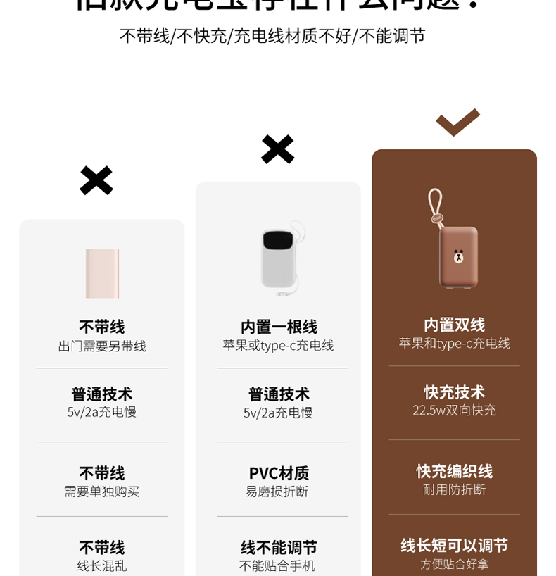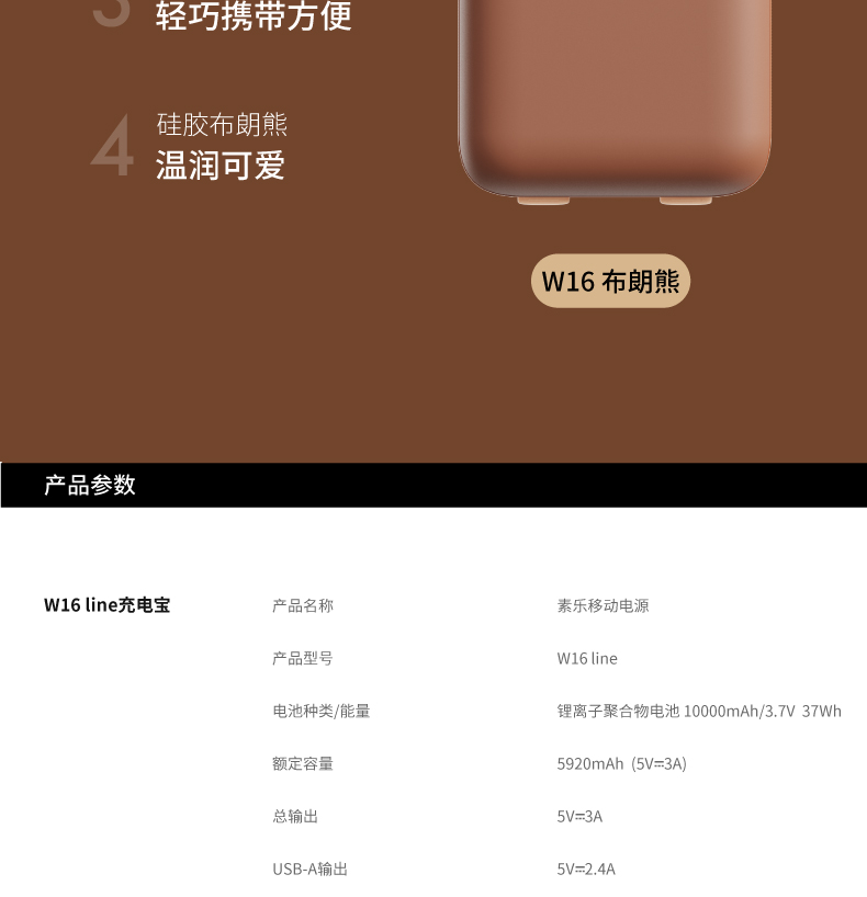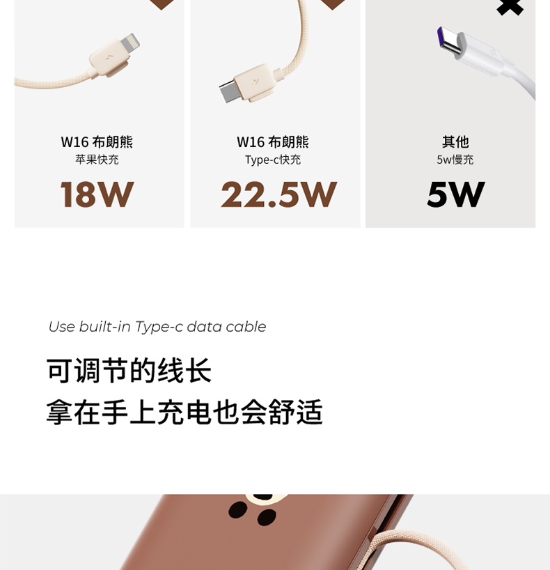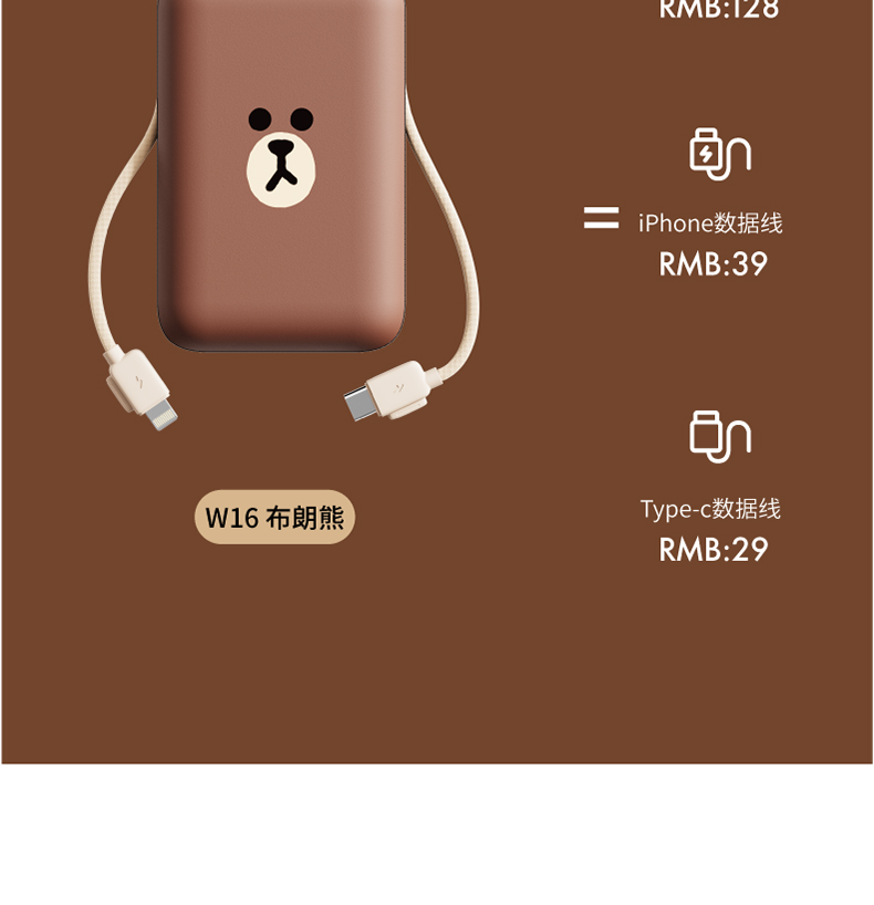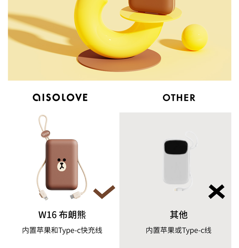 素乐 LINE W16 自带线快充充电宝