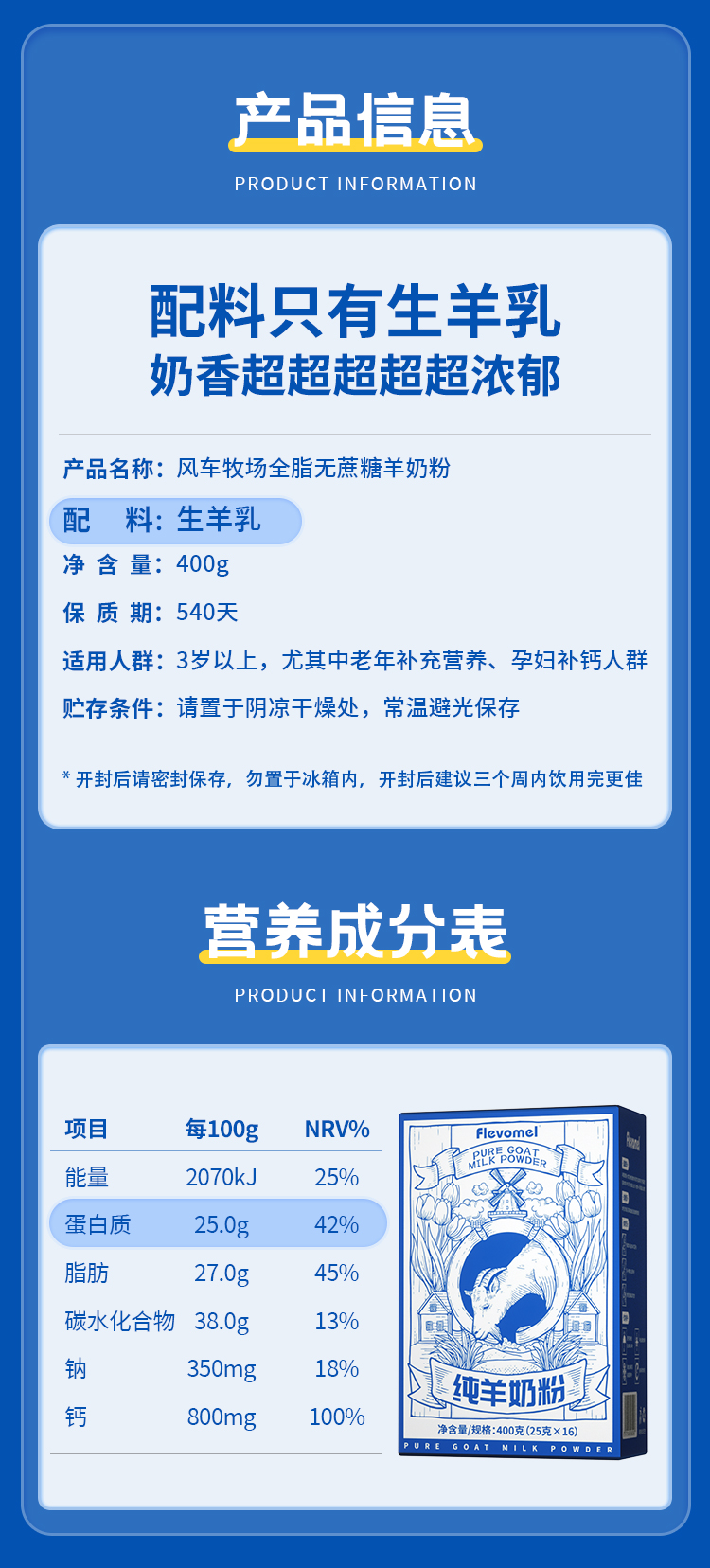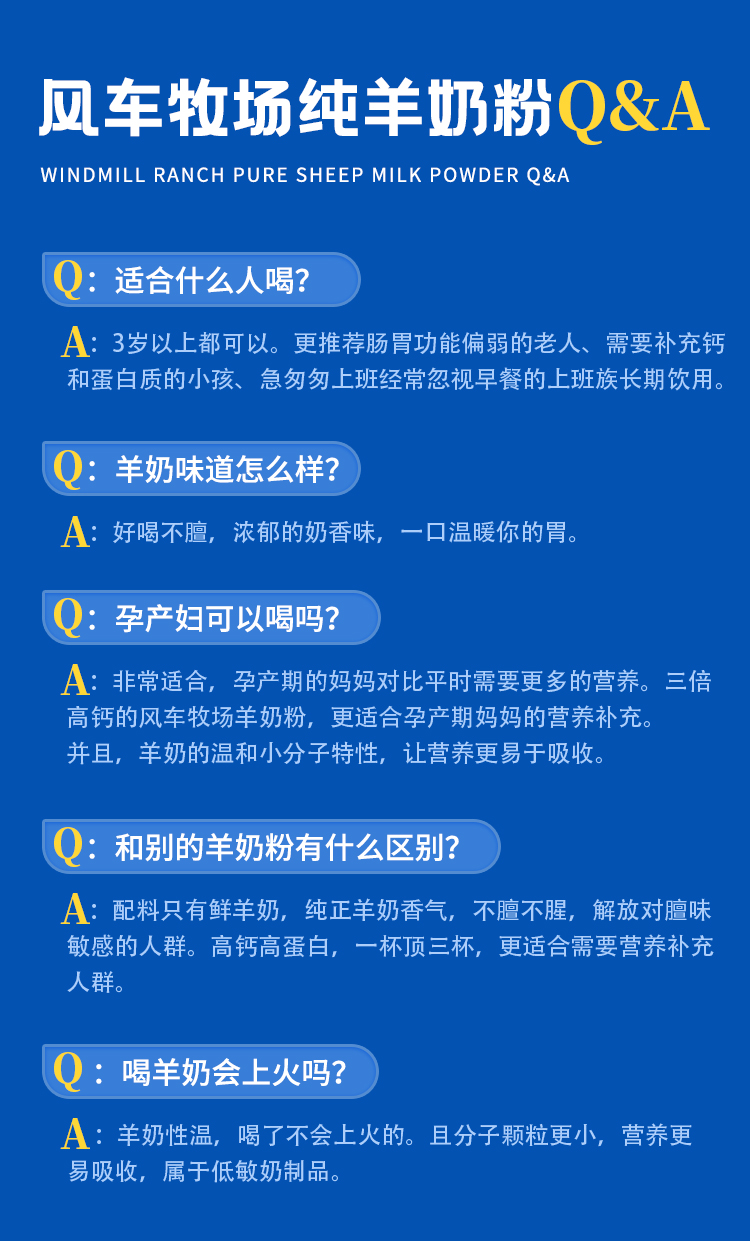 风车牧场 羊奶粉浓香型小蓝盒 独立小包装高钙无蔗糖全脂国产 成人中老年无蔗糖儿童成长