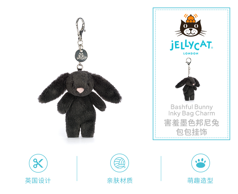 Jellycat 害羞墨色邦尼兔包包挂饰 17cm
