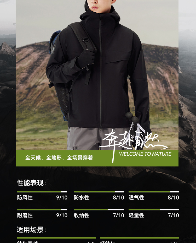 伯希和户外硬壳冲锋衣男2025年新款单层防风防水徒步登山外套女