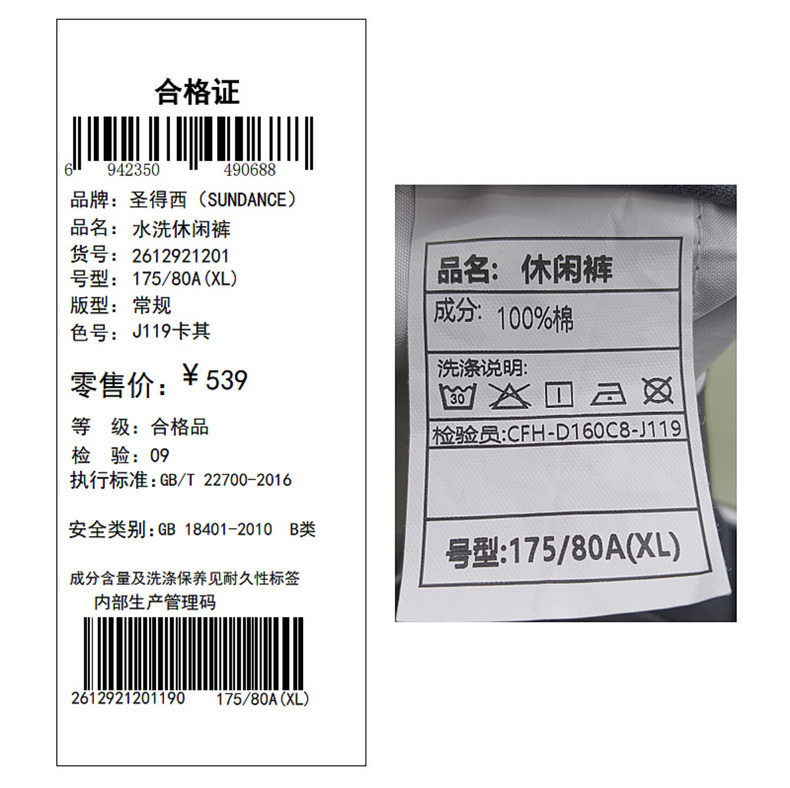 【远红外传热灯芯绒】圣得西抗菌九分裤秋冬款系带小锥裤潮2362915745