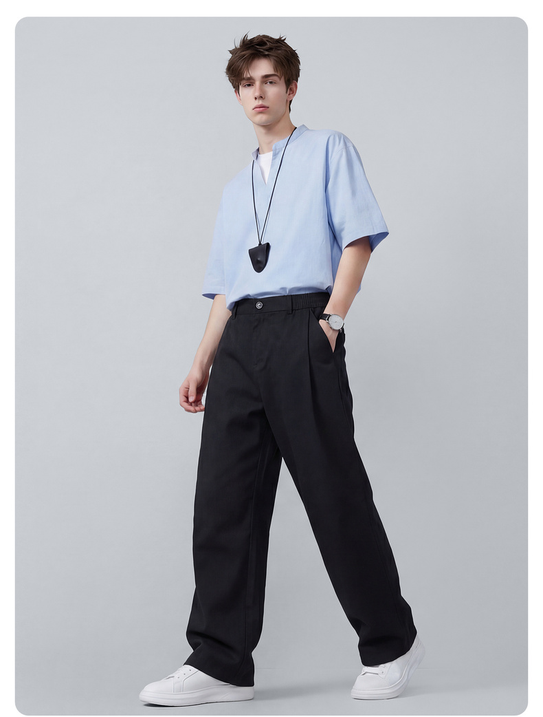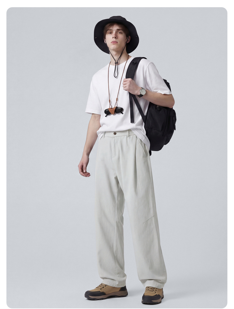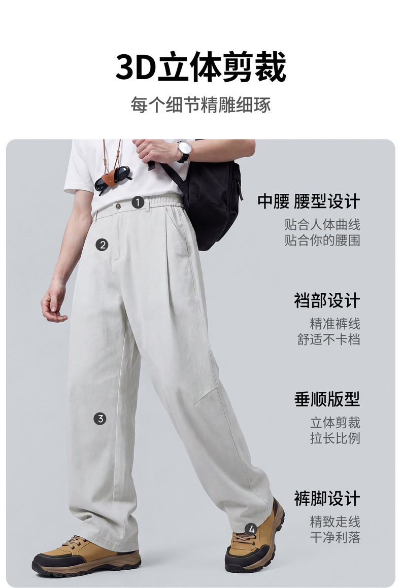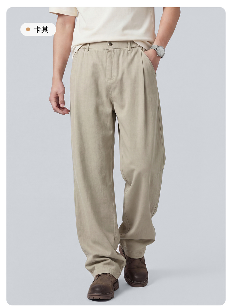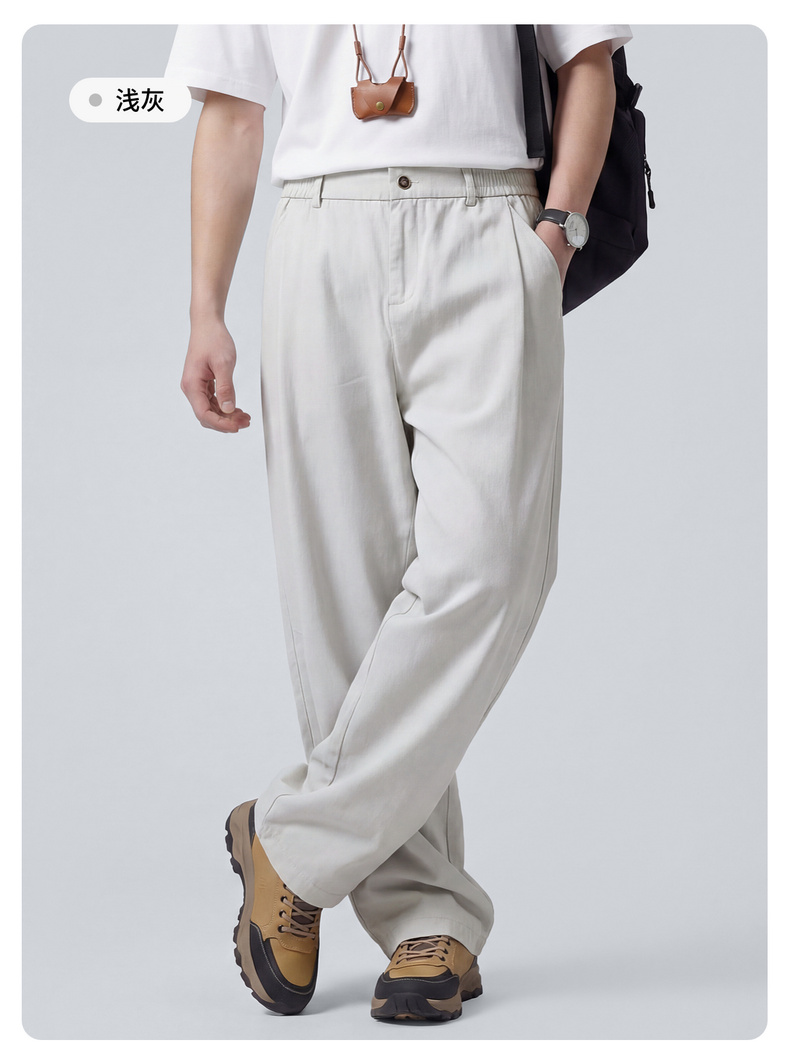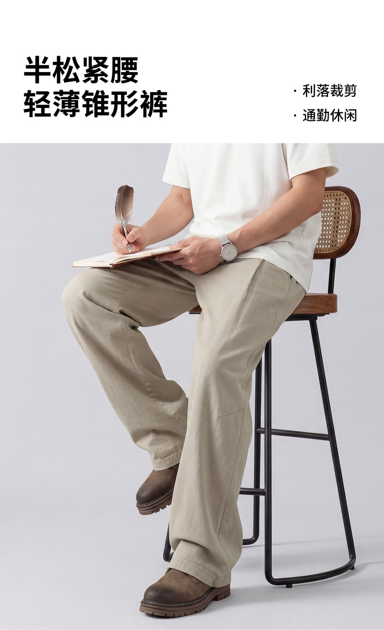 【100%棉】圣得西男士休闲裤2026新款春季时尚都市轻薄锥形长裤子