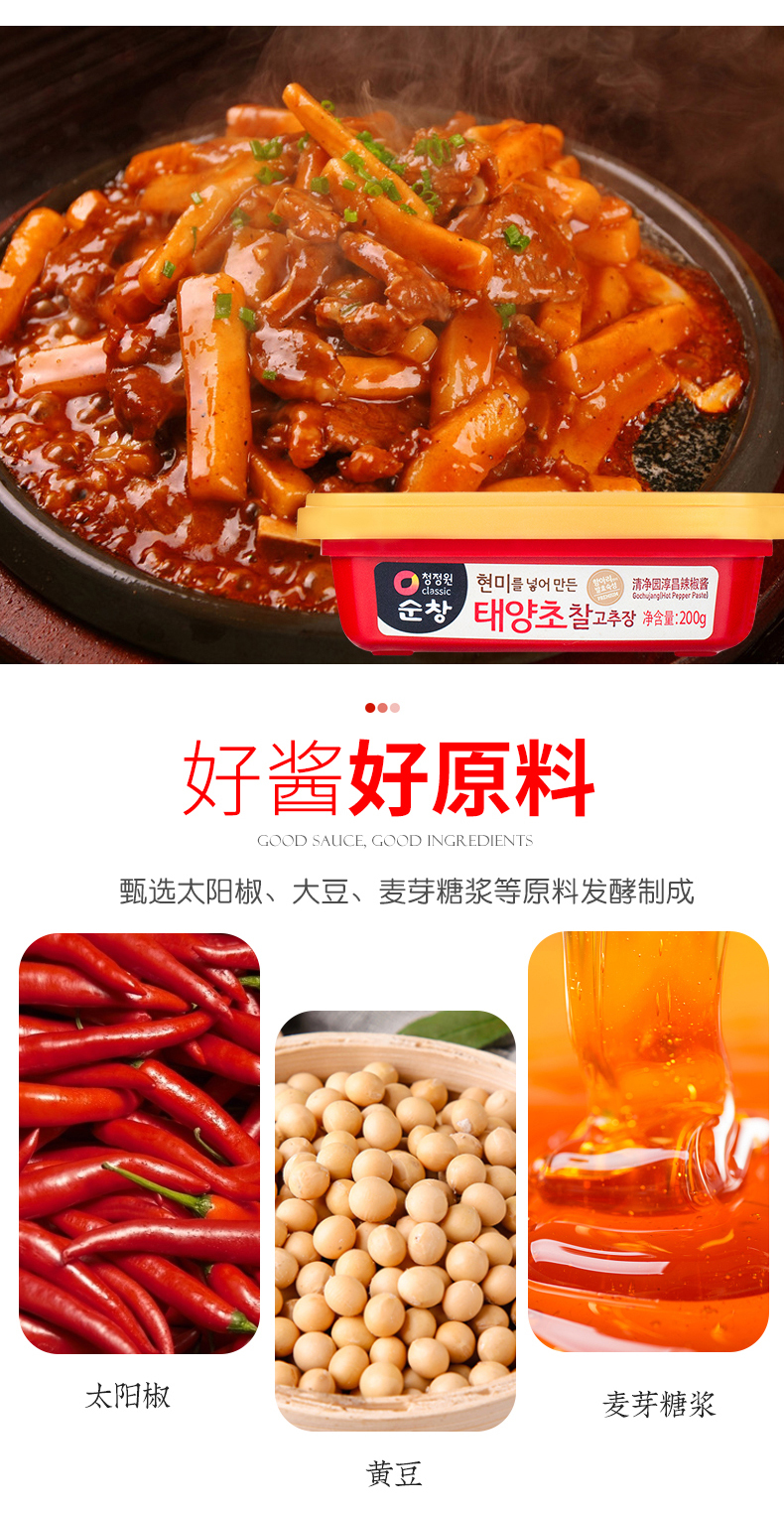200g 清净园 淳昌辣椒酱 韩国进口 韩式辣酱石锅拌饭辣炒年糕酱