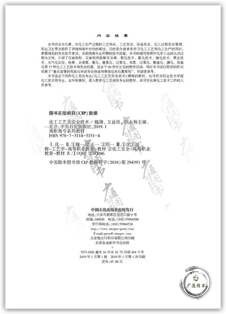 【旗舰店】化工工艺及安全技术 9787511451514 中国石化出版社