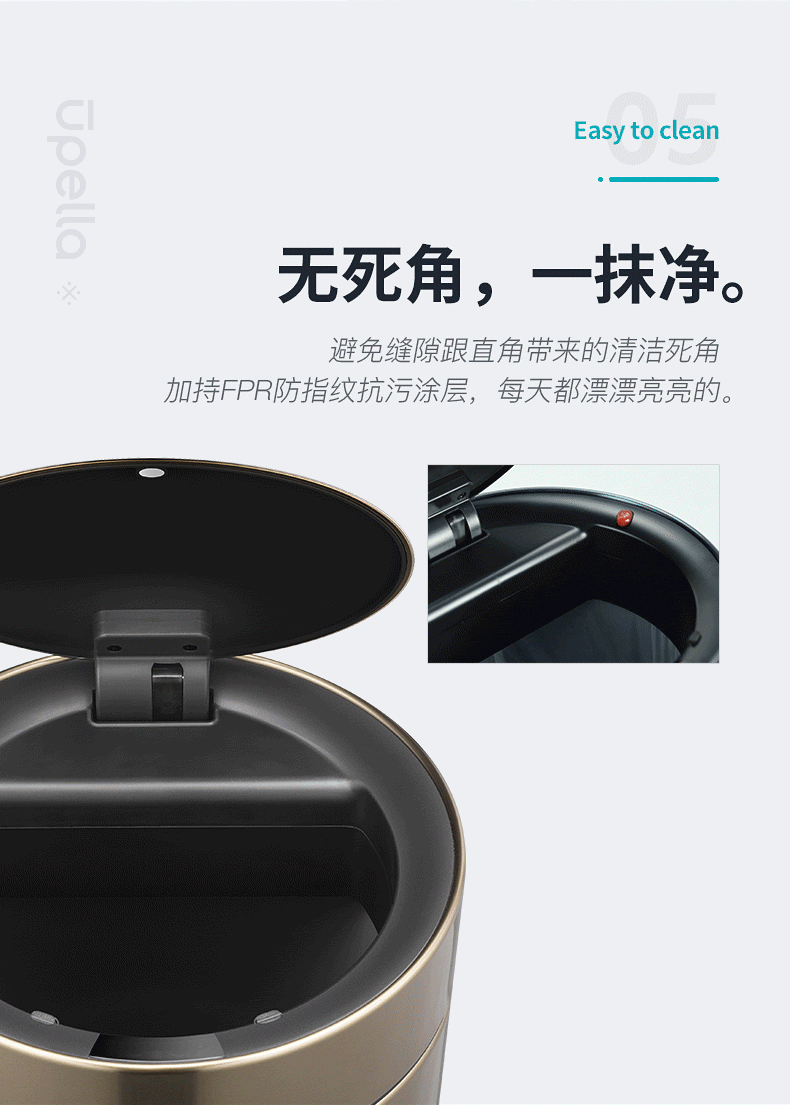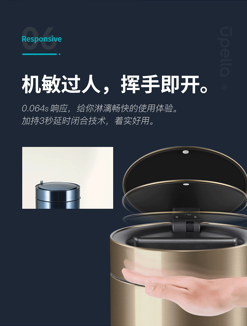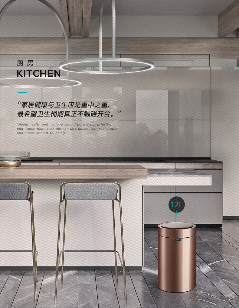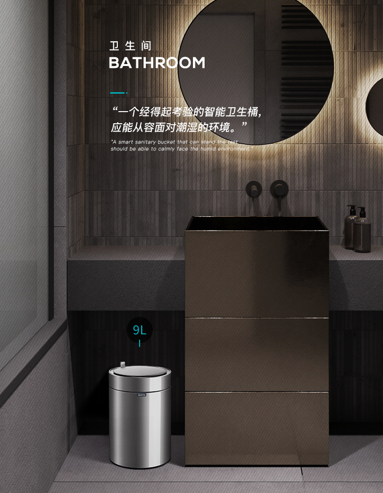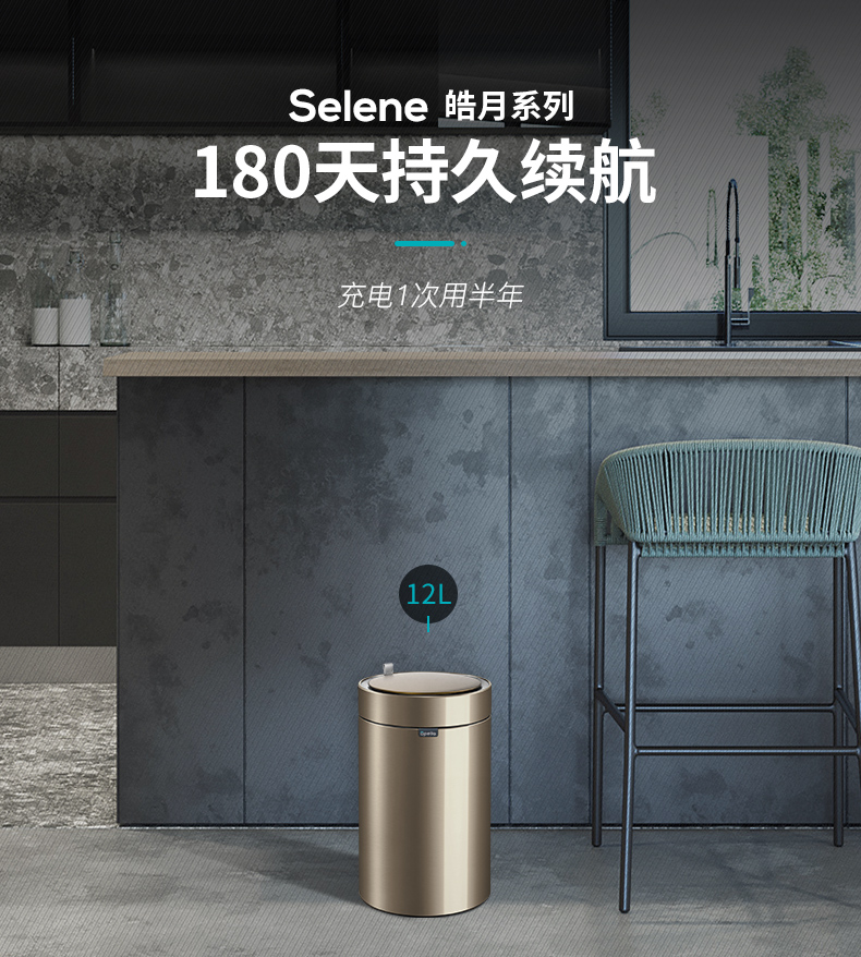 优百纳皓月系列欧式创意家用智能垃圾桶不锈钢自动感应客厅办公室