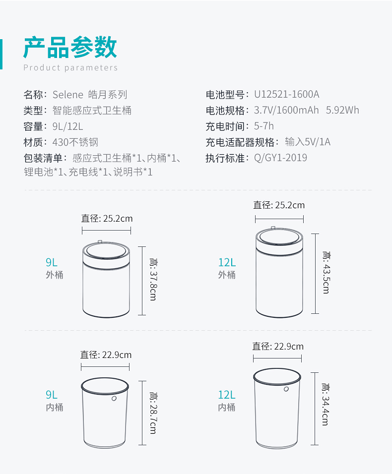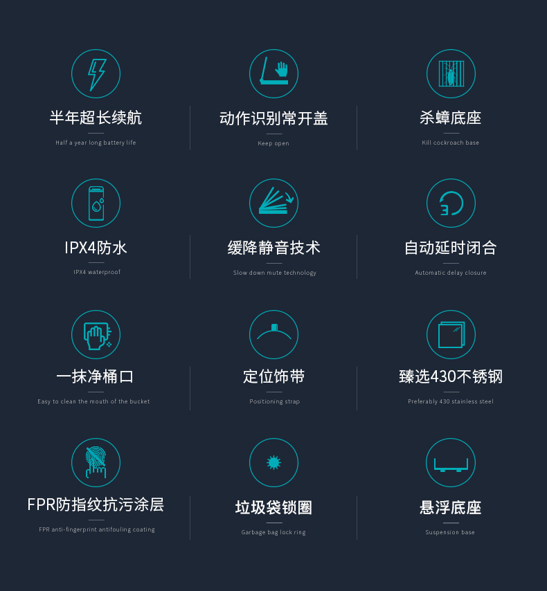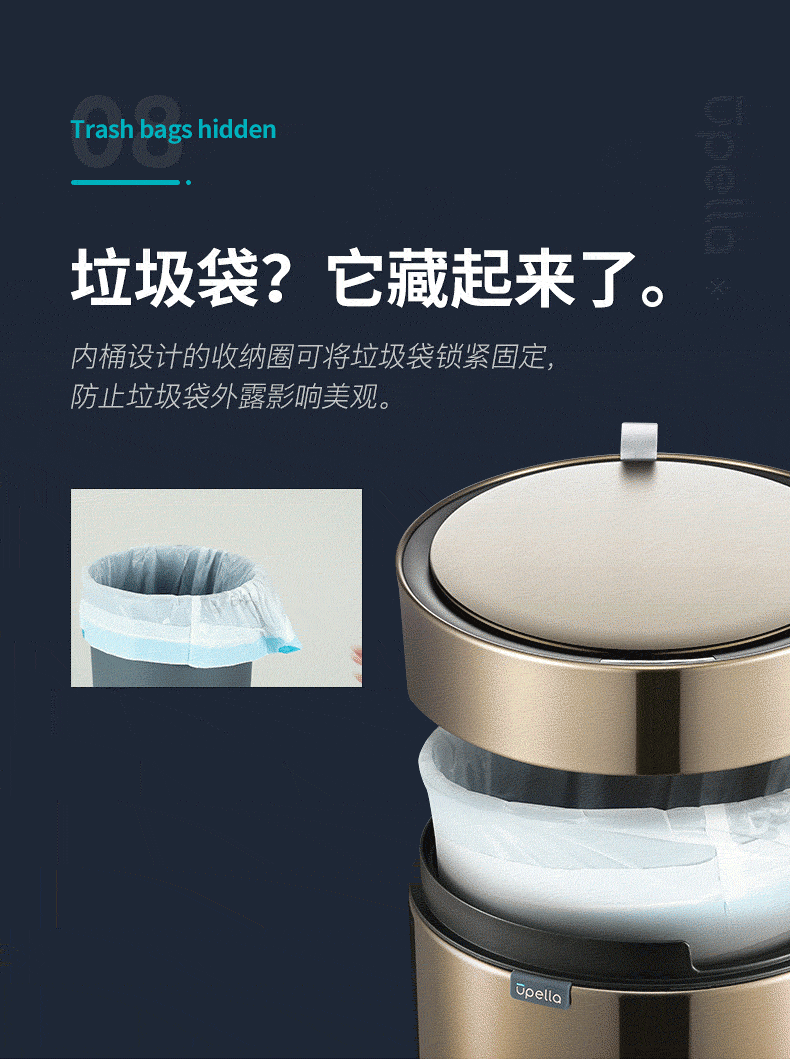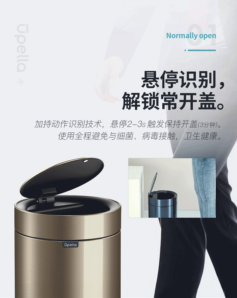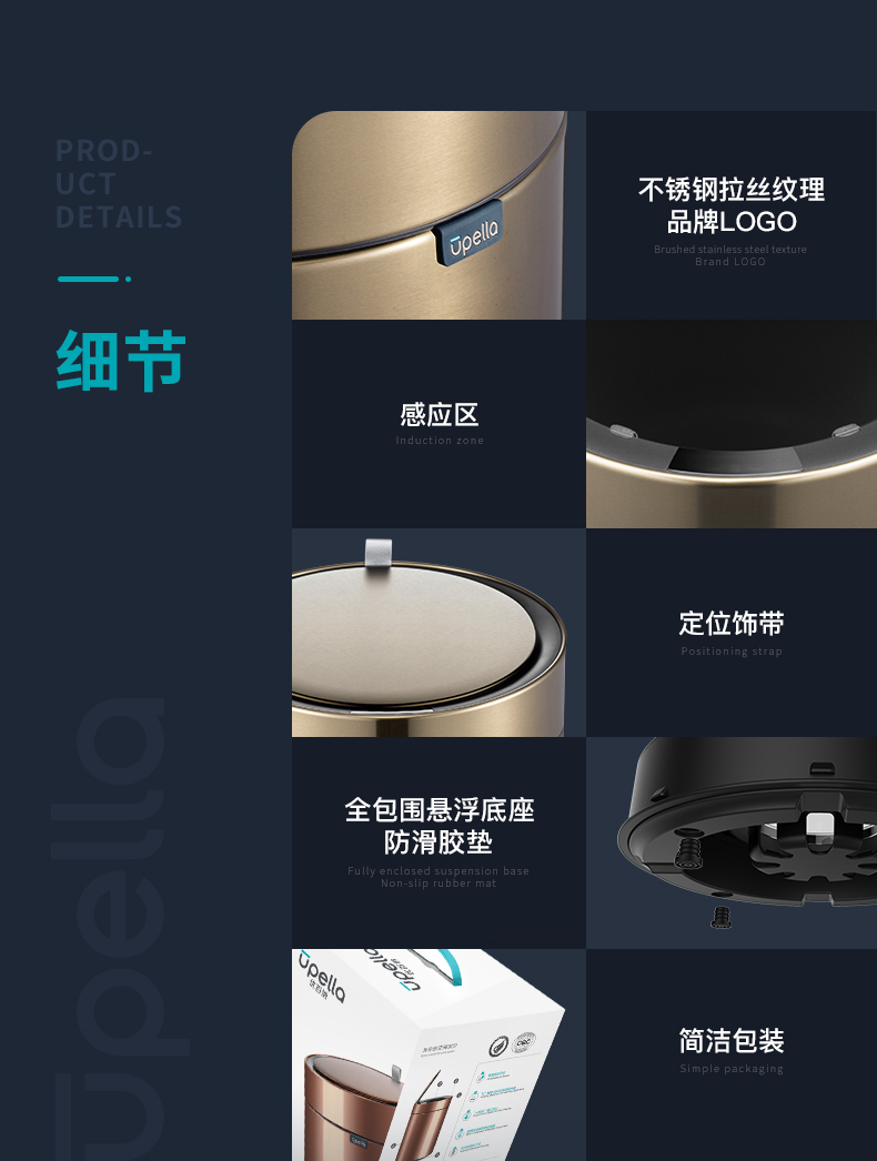 优百纳皓月系列欧式创意家用智能垃圾桶不锈钢自动感应客厅办公室