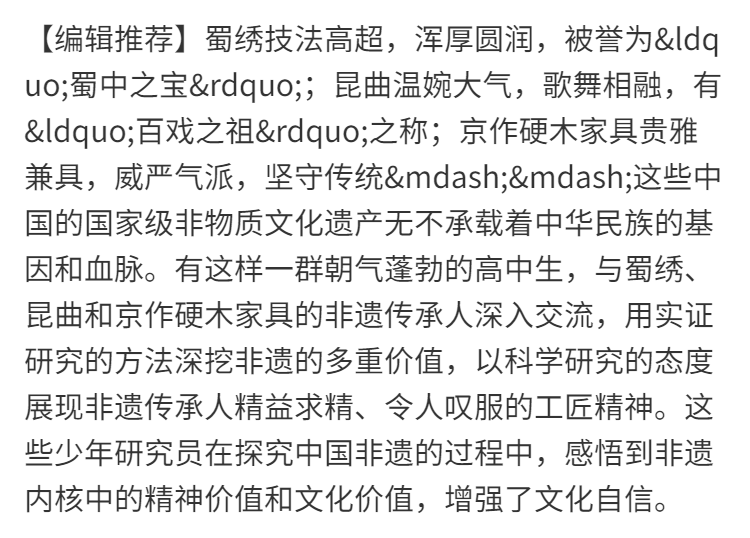 少年研究员:探究中国非遗-蜀绣.昆曲与京作硬木家具篇