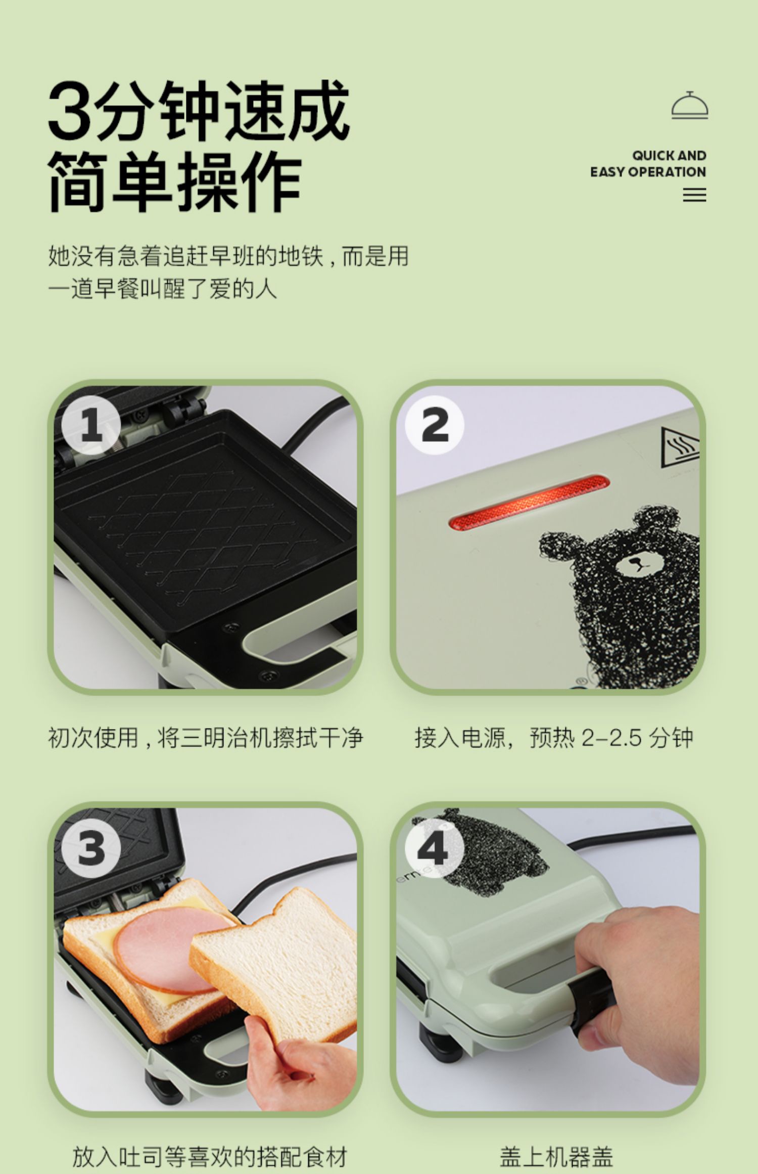 德国ERNTE三明治早餐机轻食机家用多功能面包烤吐司神器三文治机