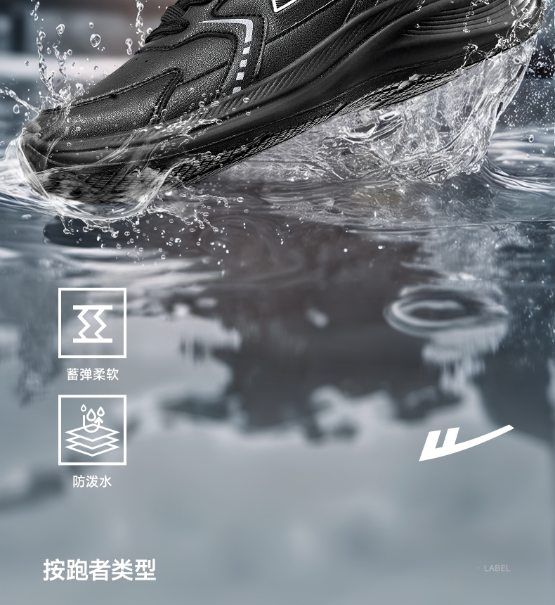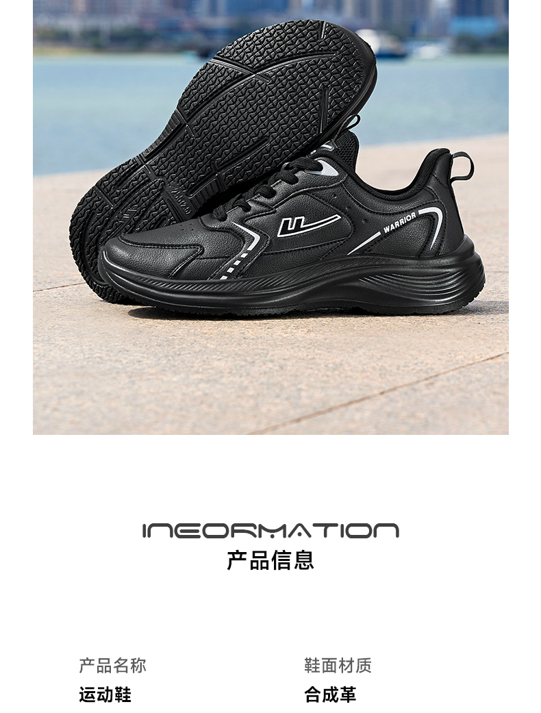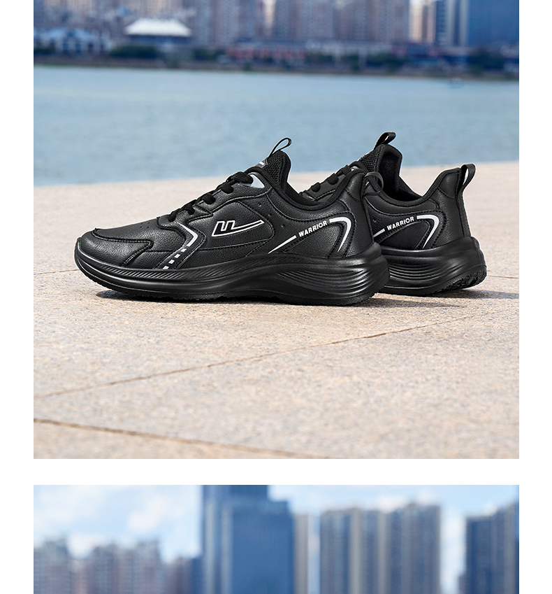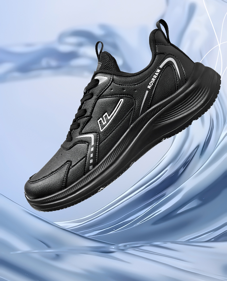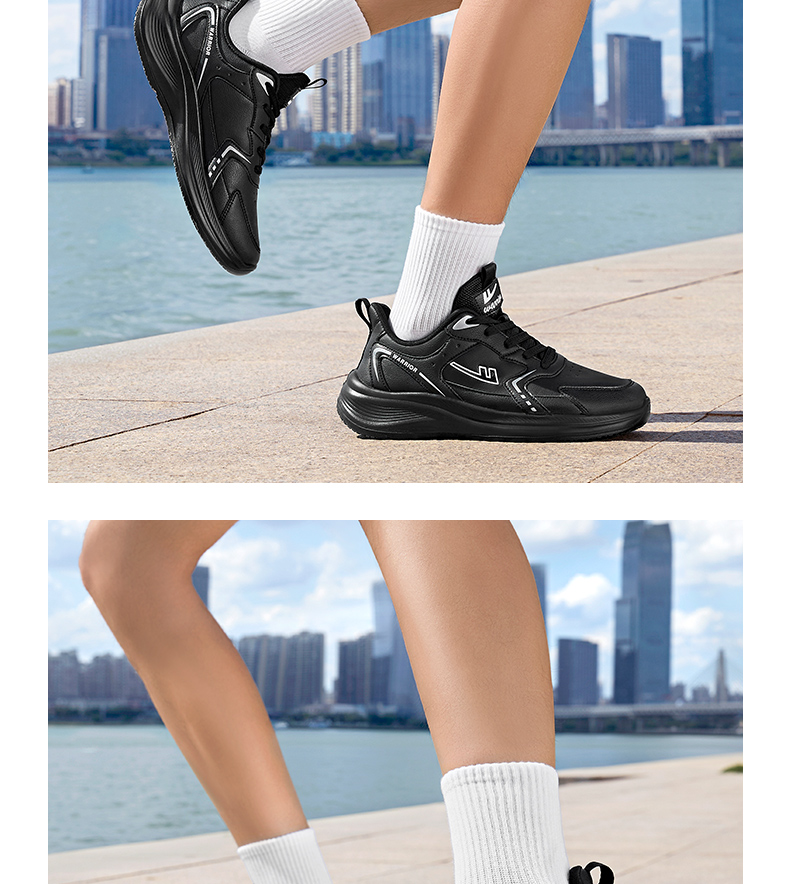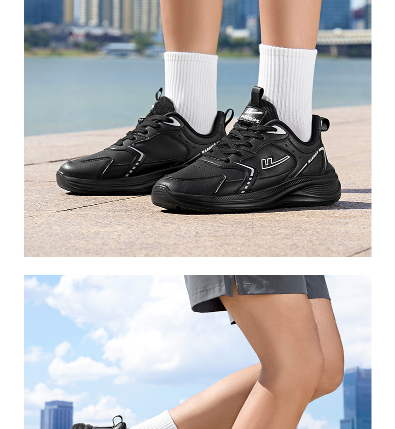 回力男鞋运动鞋2025冬季黑色皮面软底跑步鞋防泼水轻便跑步鞋子