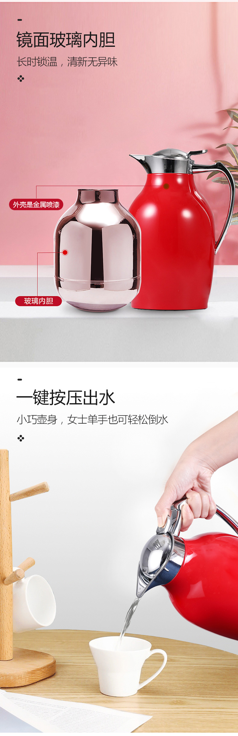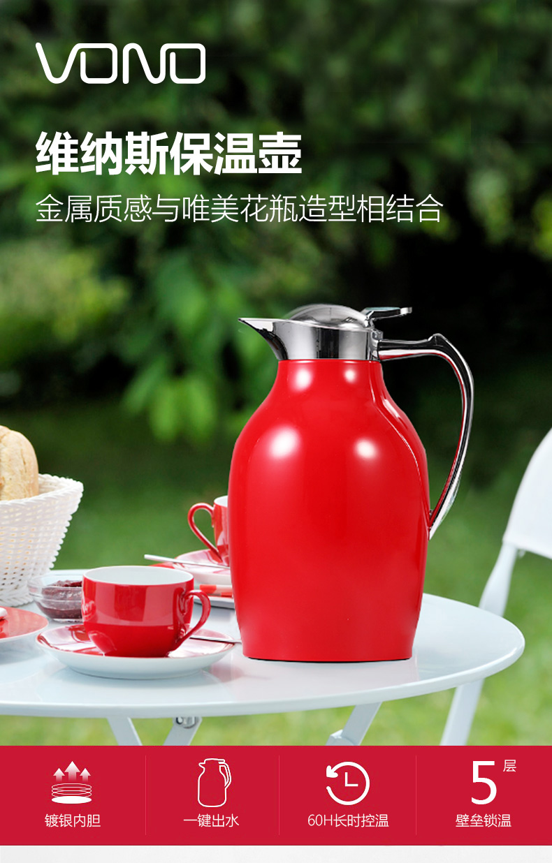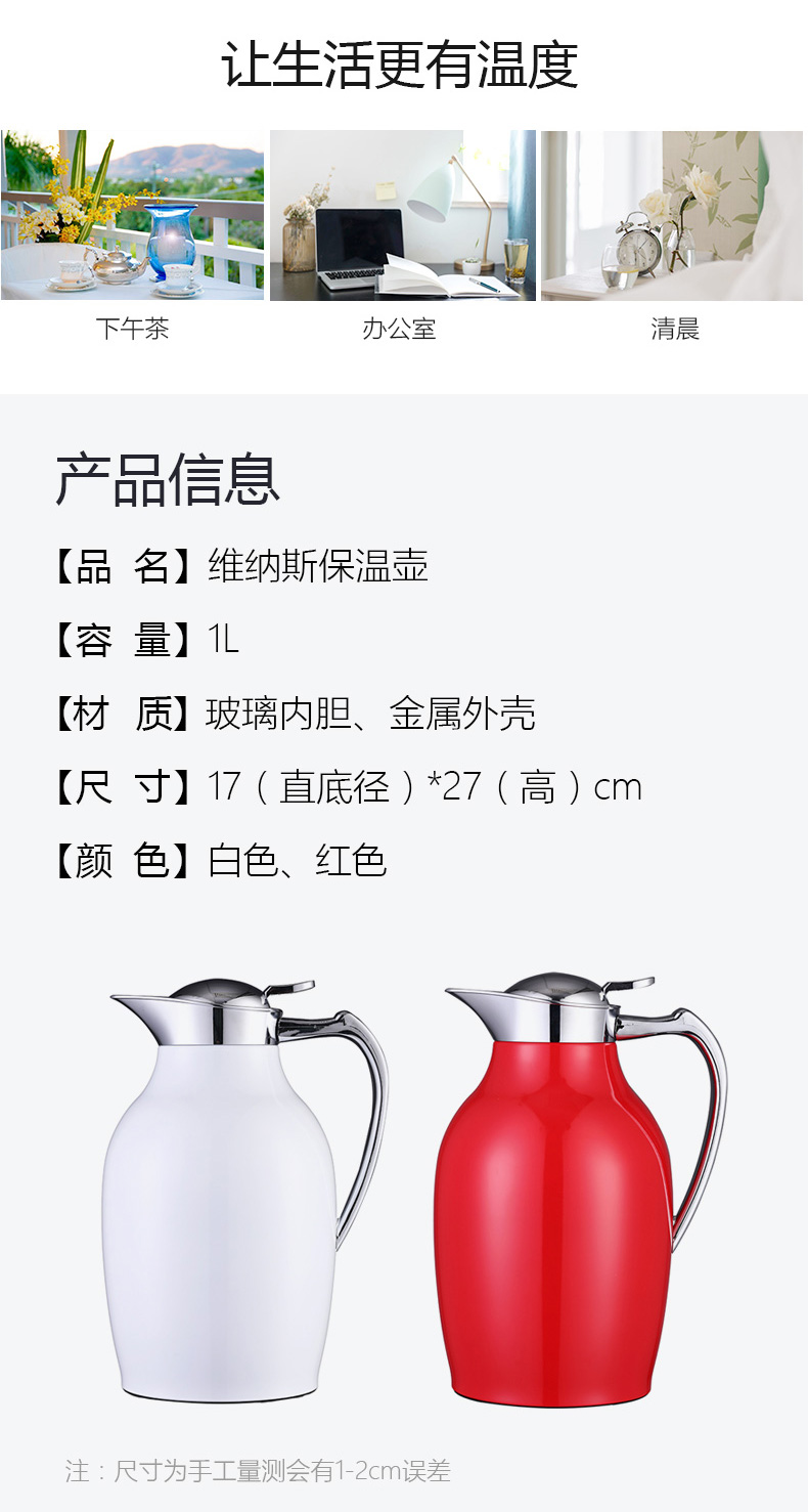 新品利vono快保温壶 Ducky 维纳斯保温壶纯色白色暖壶暖瓶1.0L