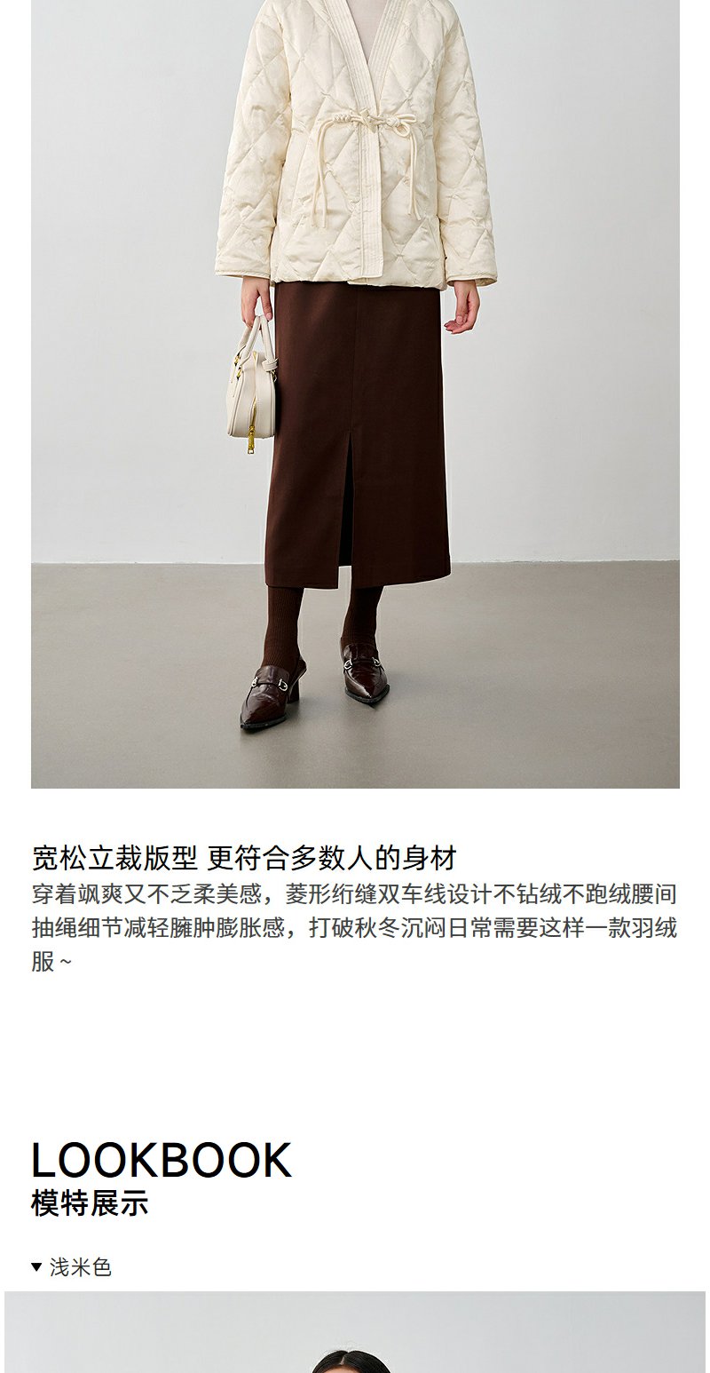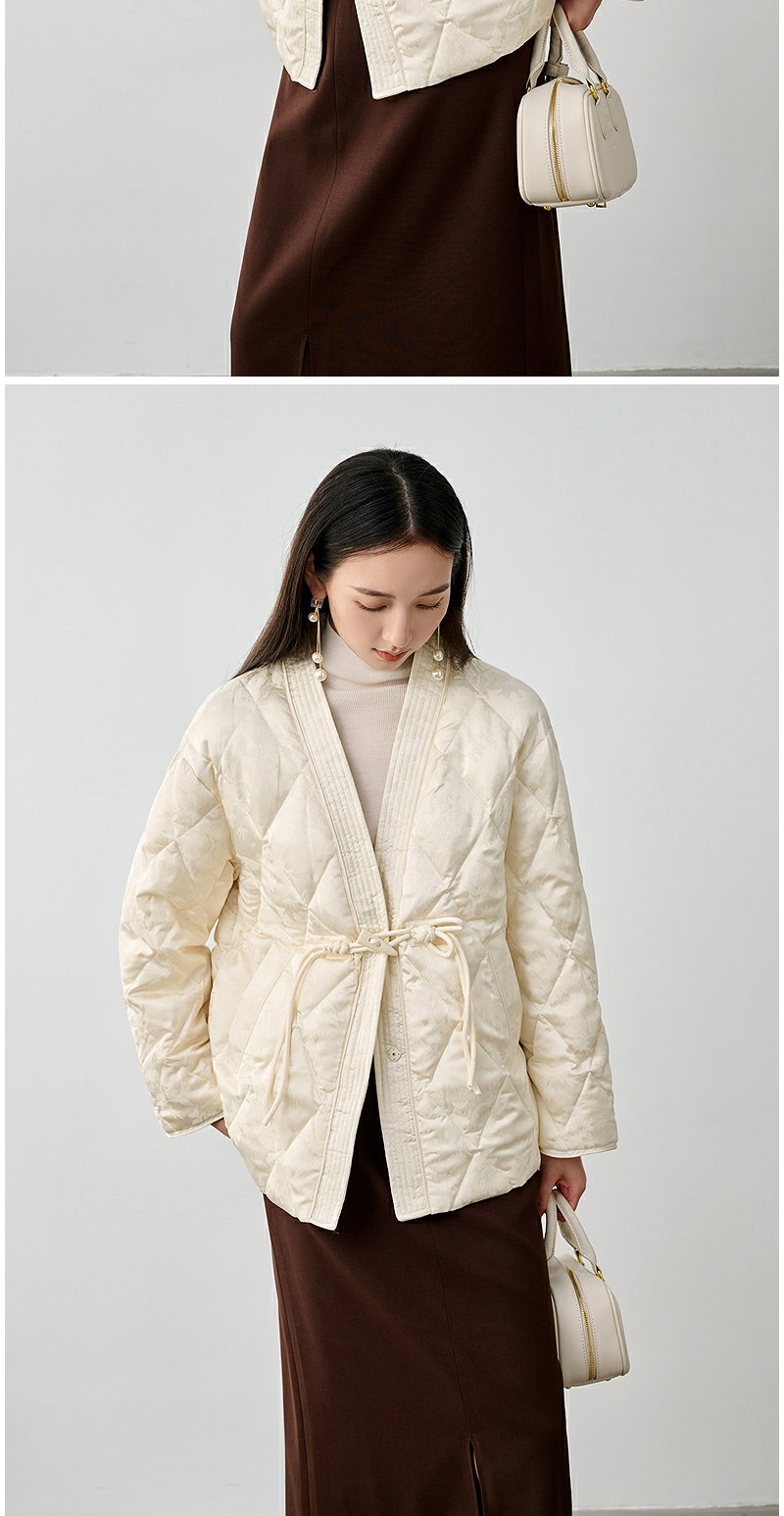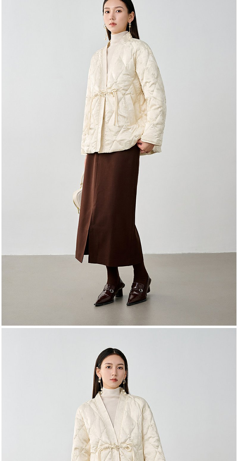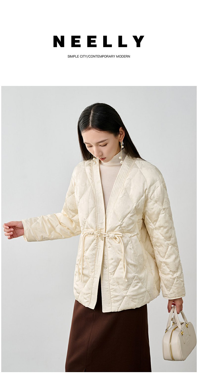 NEELLY纳俪商场同款冬季新款新中式盘扣V领爆款羽绒服女90%白鸭绒N24104L03301
