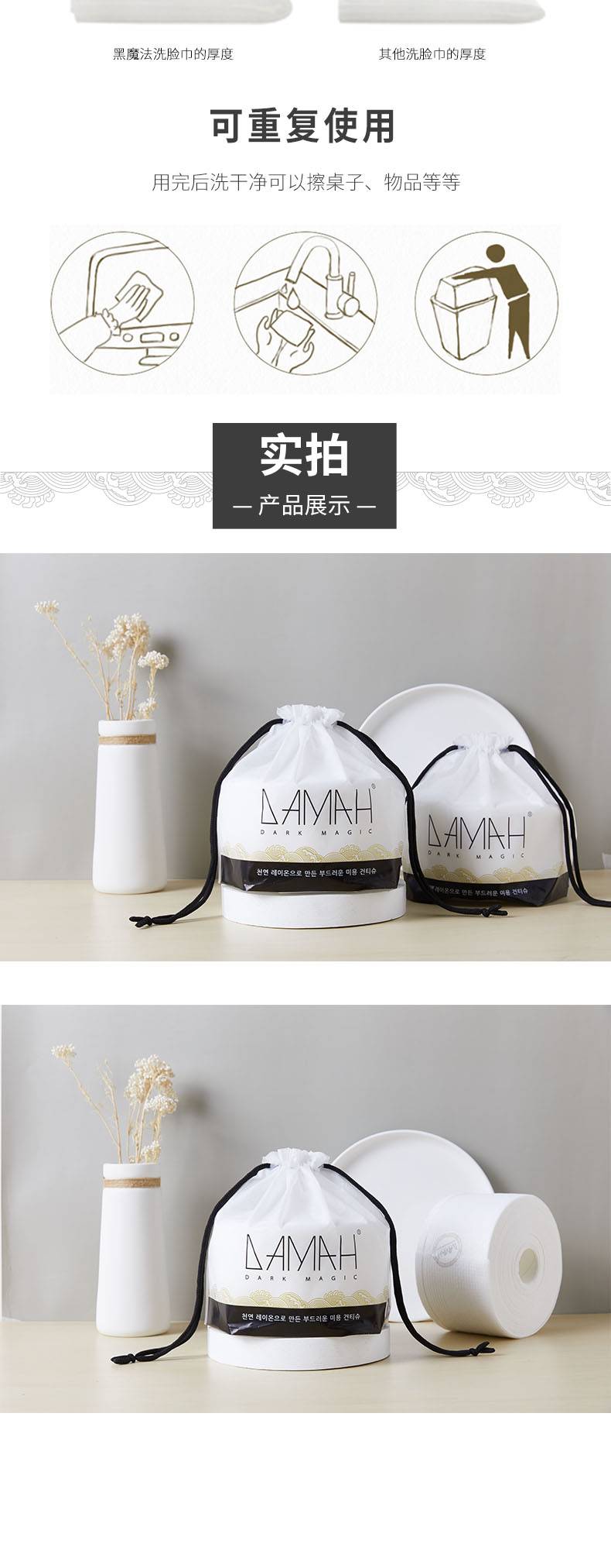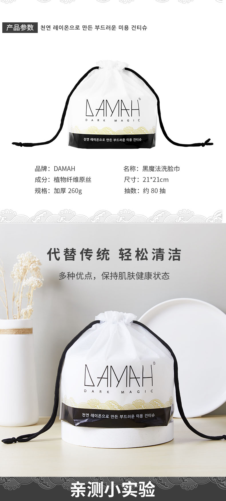(bgm) 韩国DAMAH黑魔法一次性洁面巾 正品