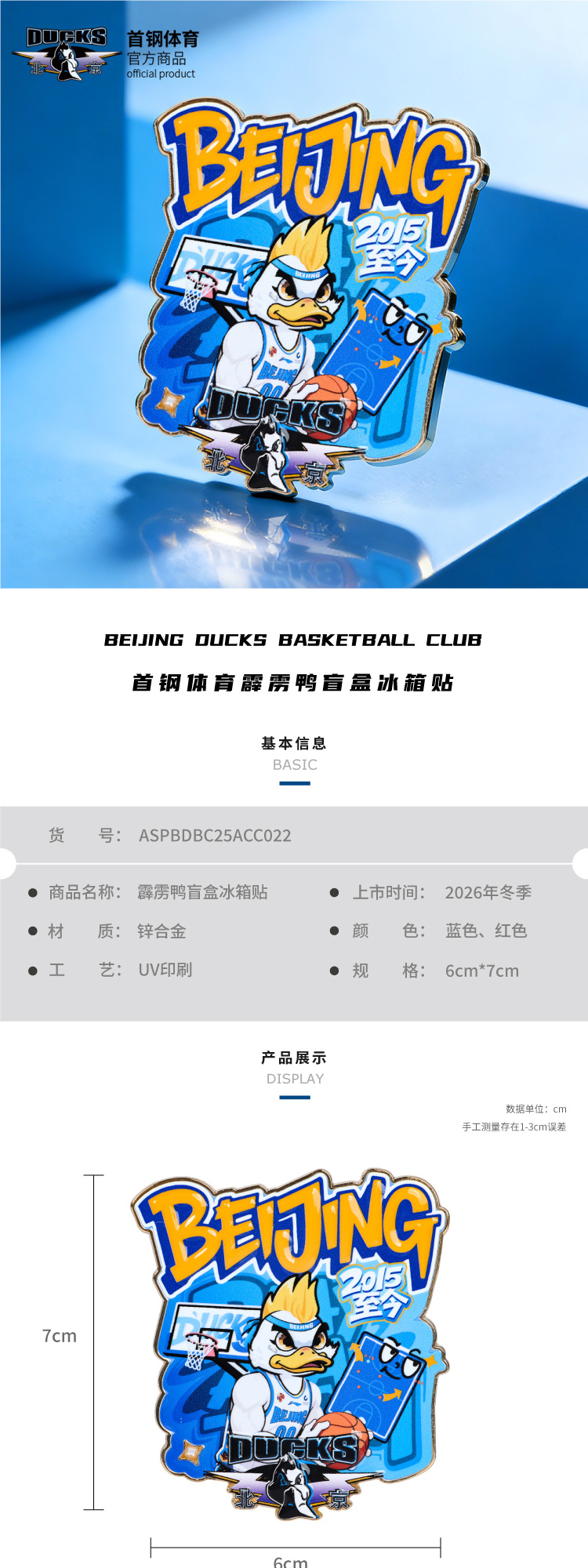 【官方正版】北京首钢 | 霹雳鸭盲盒冰箱贴男篮周边