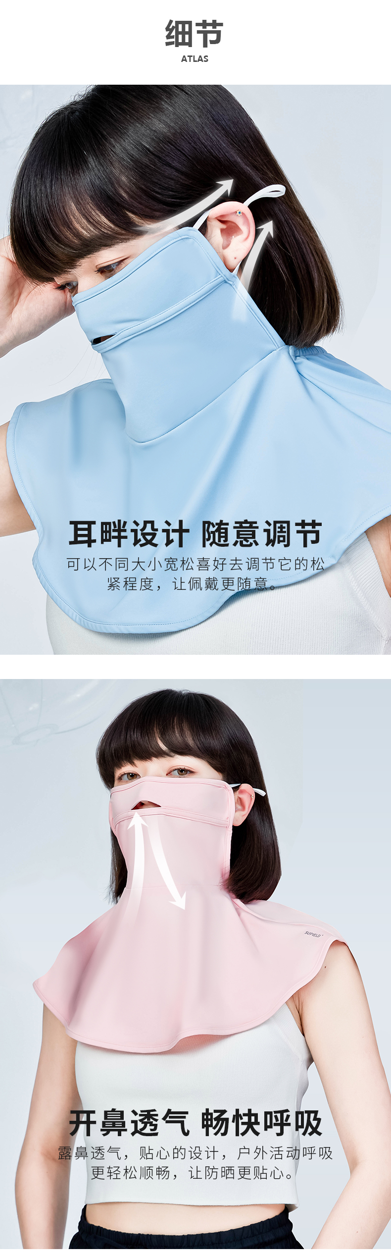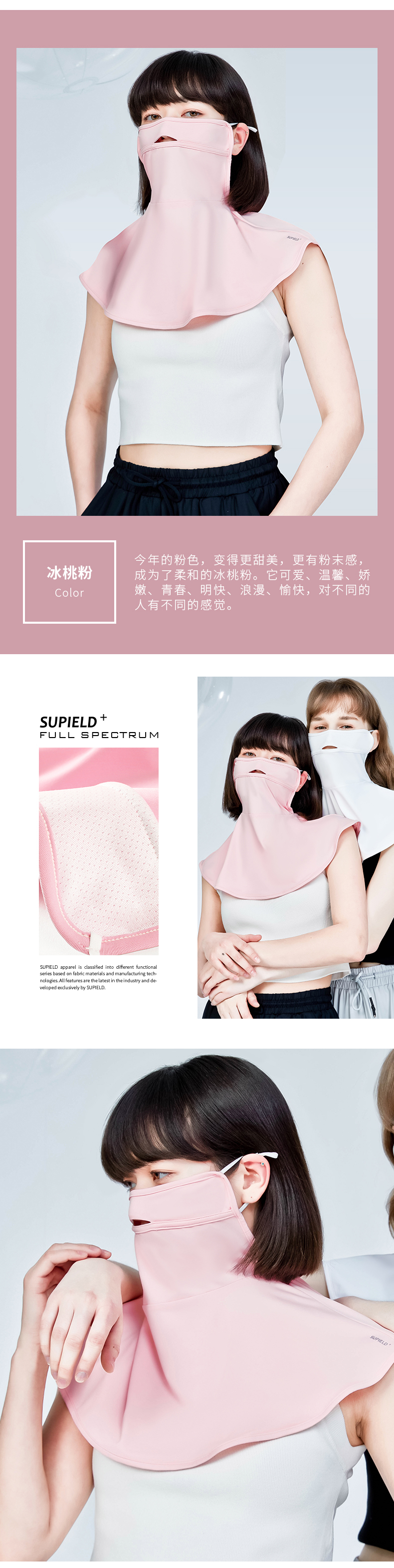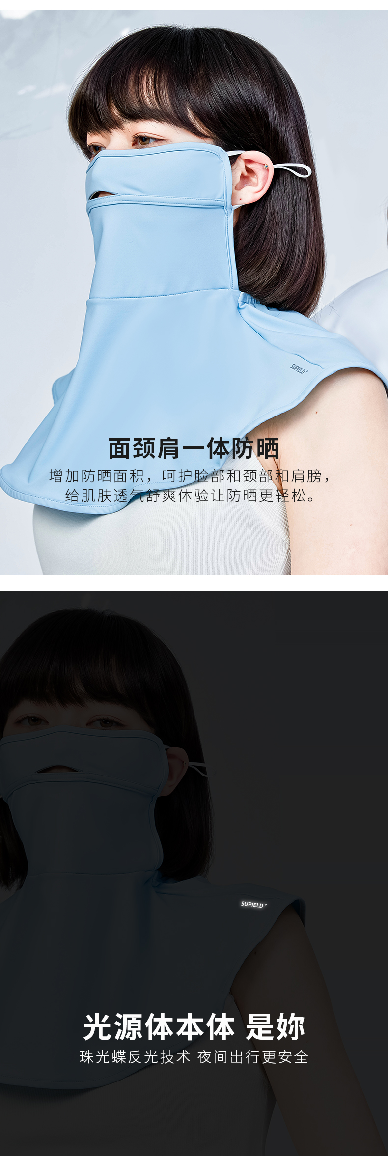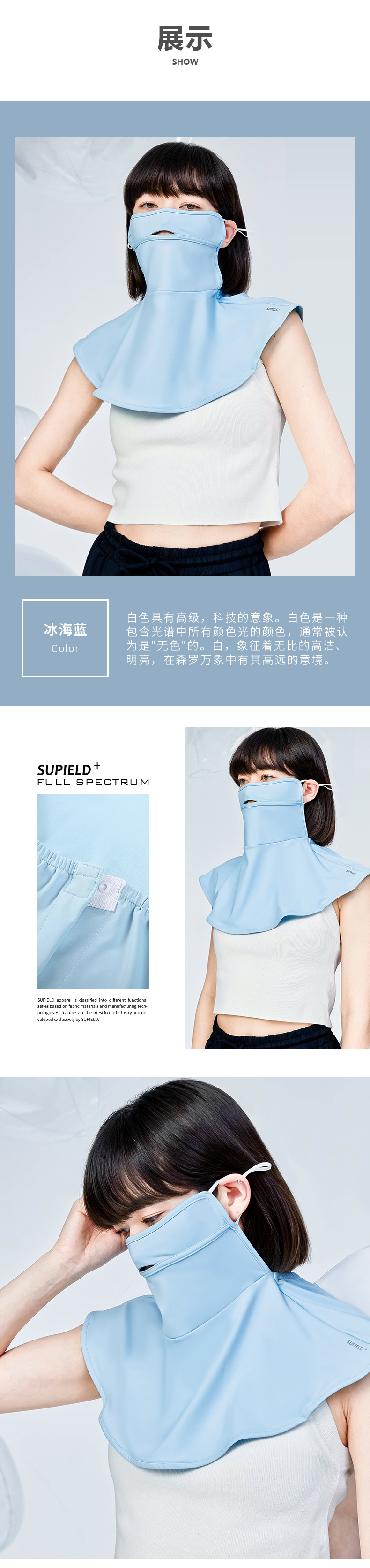 Supield素湃全波段防晒面罩女嘴鼻开孔透气夏季薄款颈部防晒