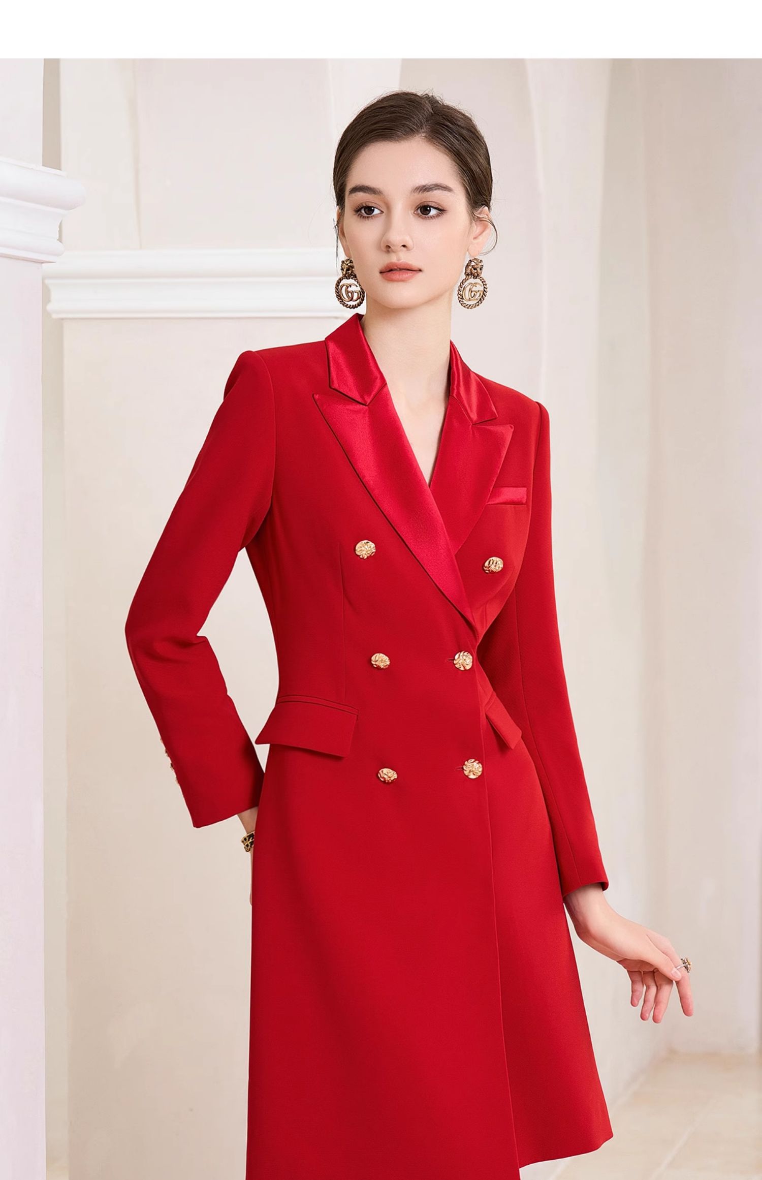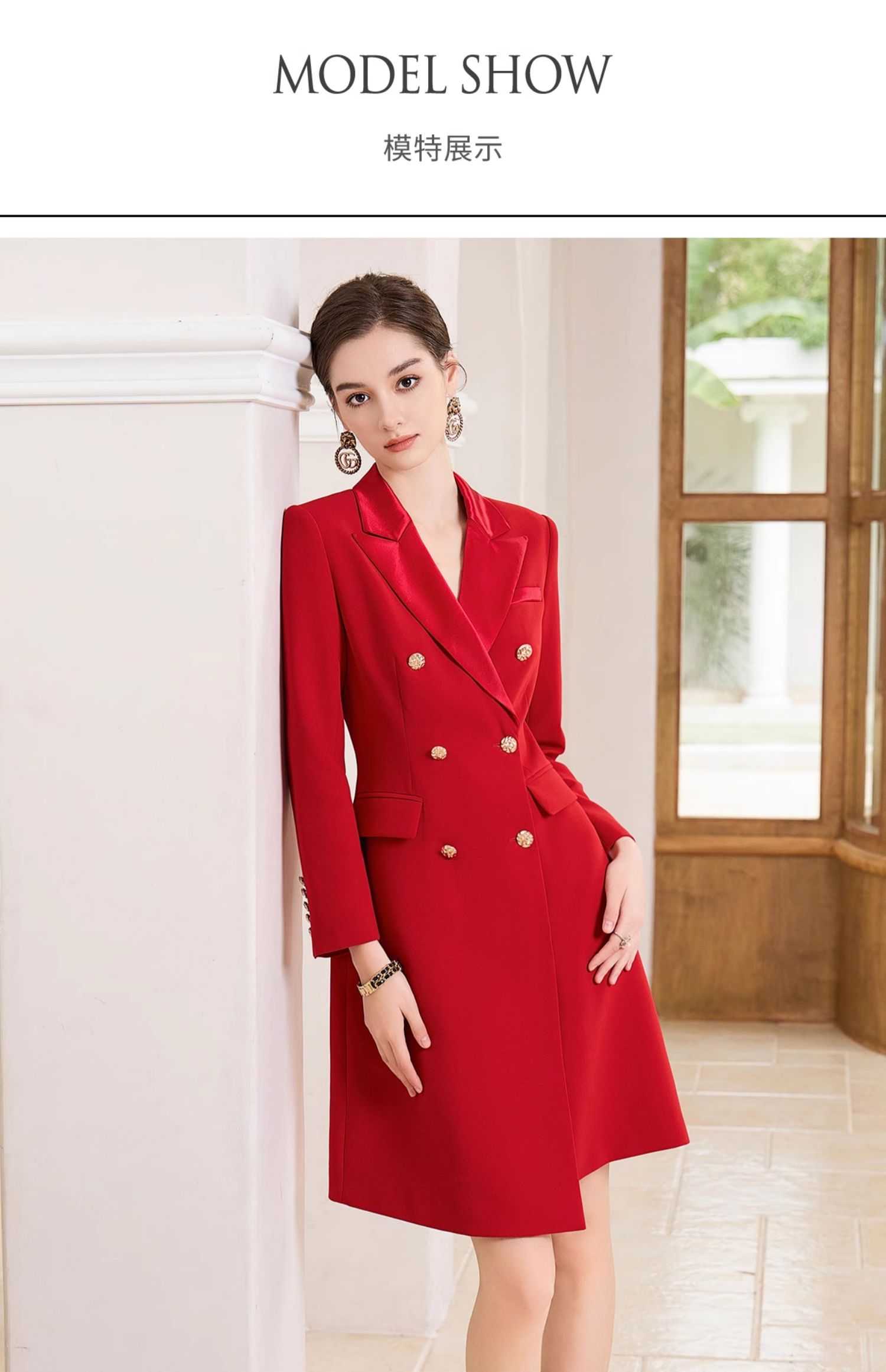 IWY/红色年会礼服女缎领拼接气质修身显瘦职业装Q1002