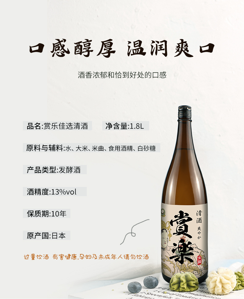 日本赏乐佳撰清酒1800ml/220020 口感醇厚温润爽口
