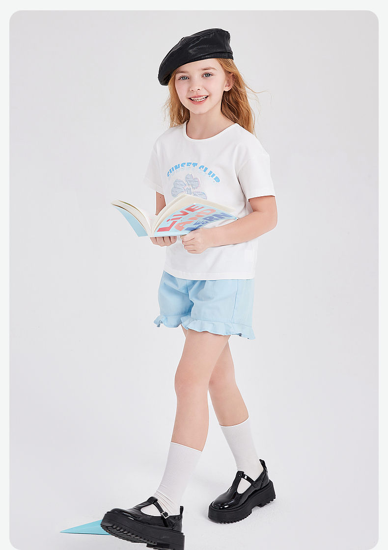 笛莎Deesha 童装女童T恤2025秋新款女童木耳边polo领上衣