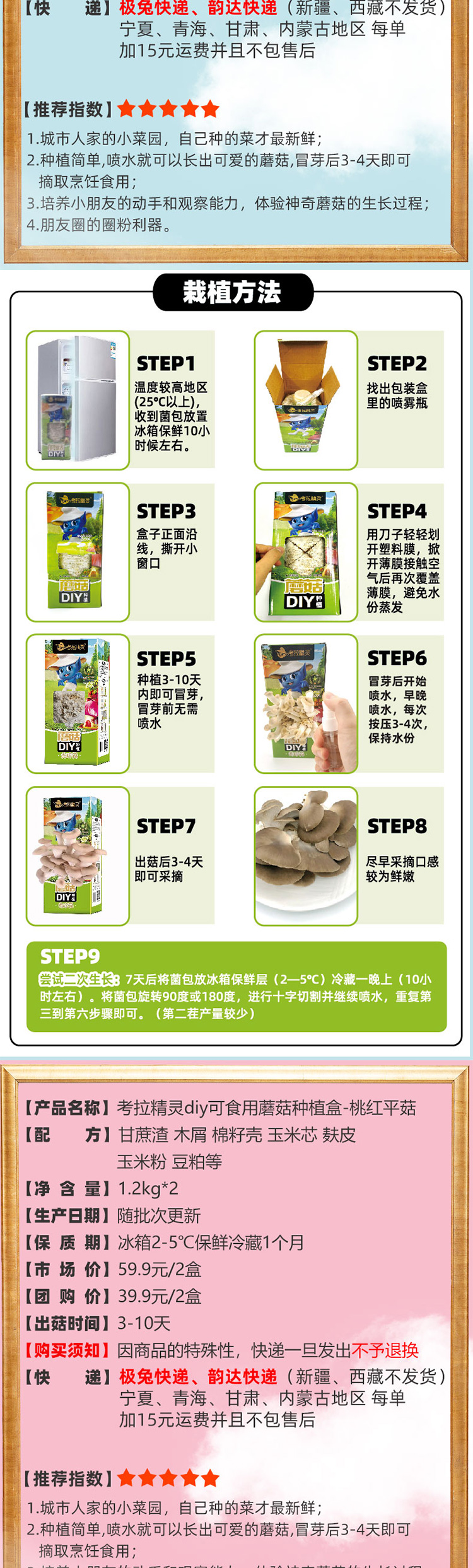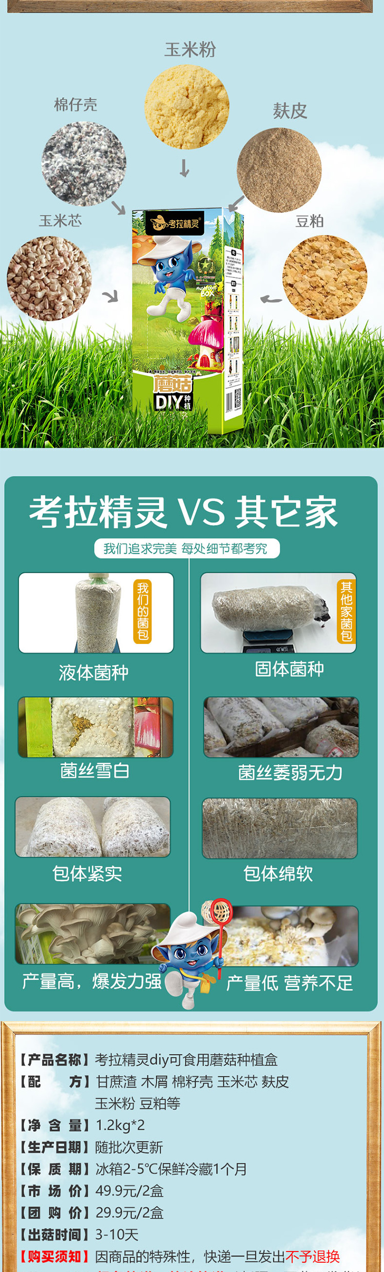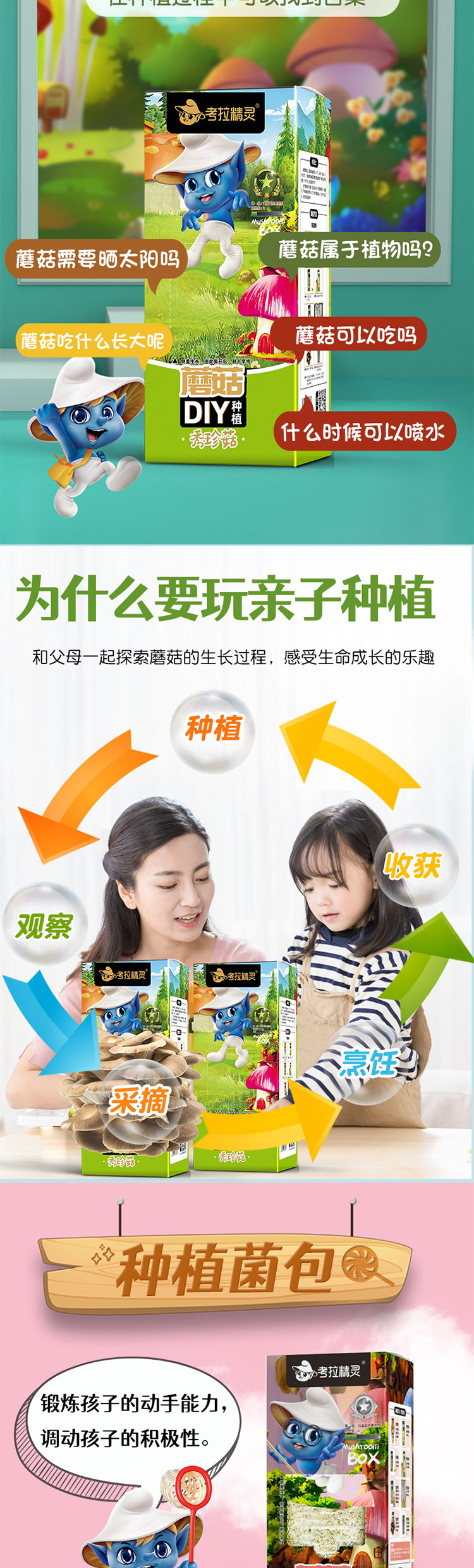 考拉精灵蘑菇盒 家庭蘑菇种植包 秀珍菇 2盒装