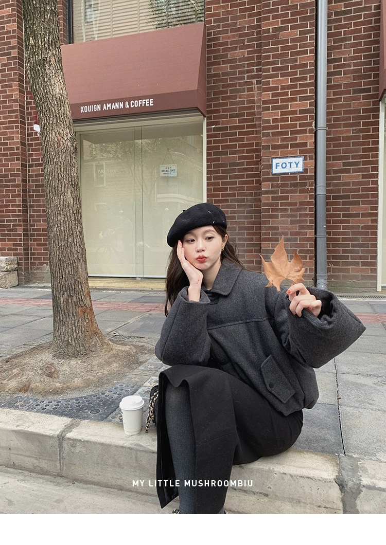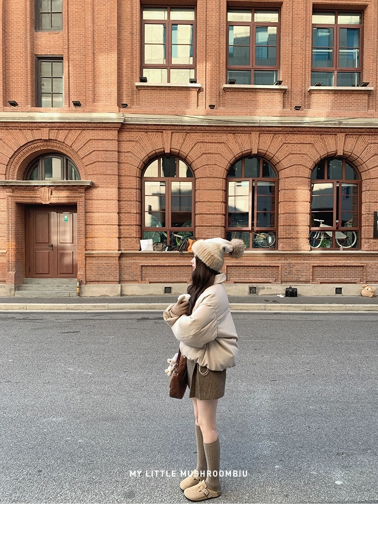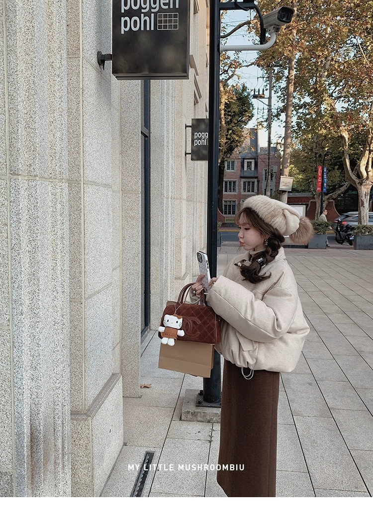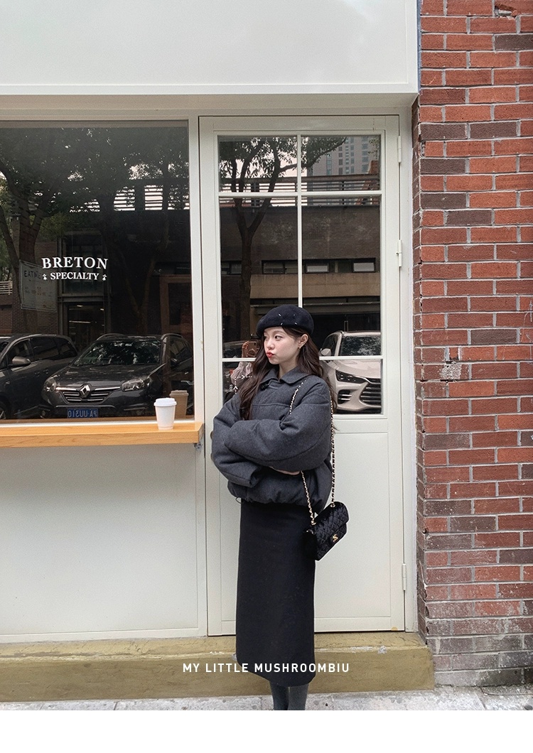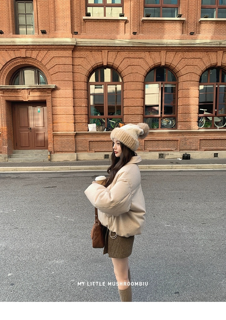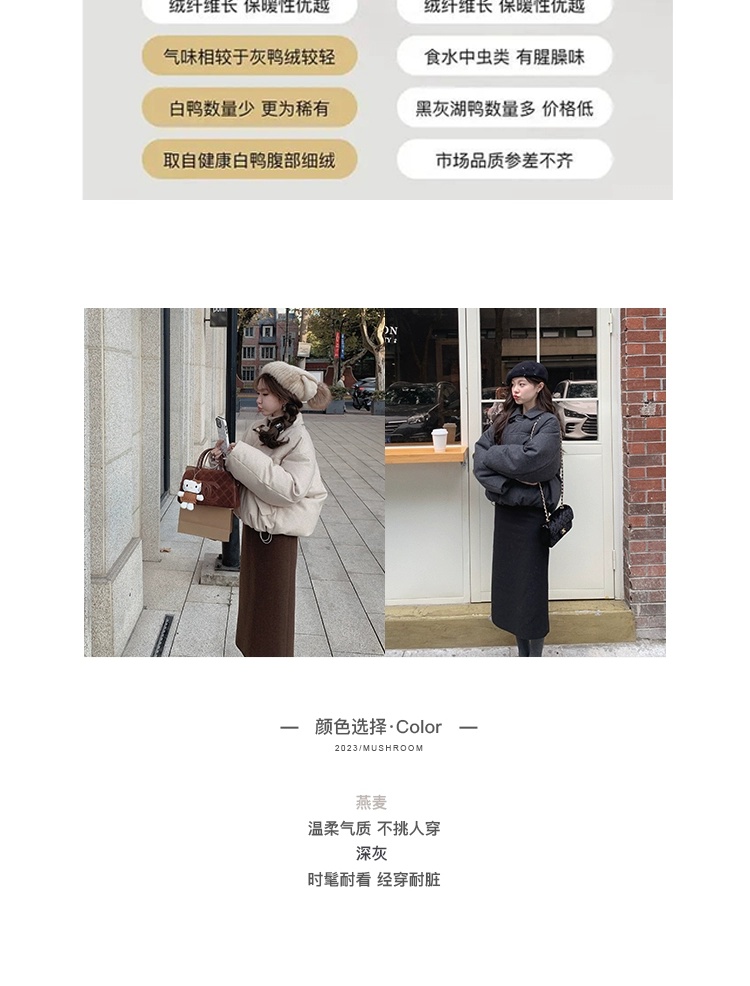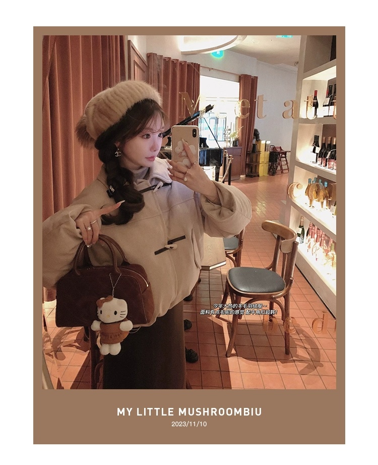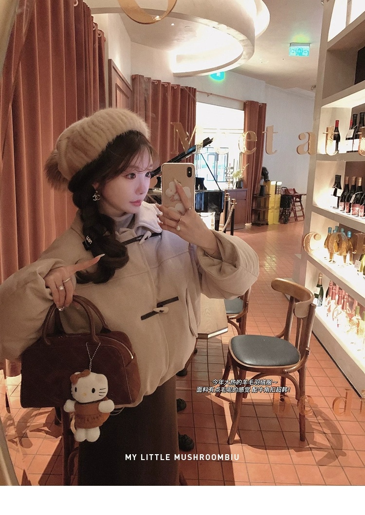 金蘑菇菇 Lucerne卢塞恩小镇 /翻领短款减龄牛角扣羊毛羽绒服