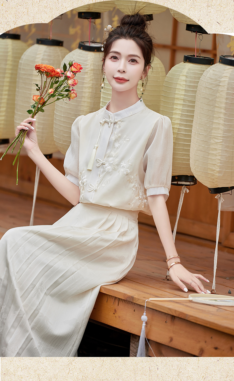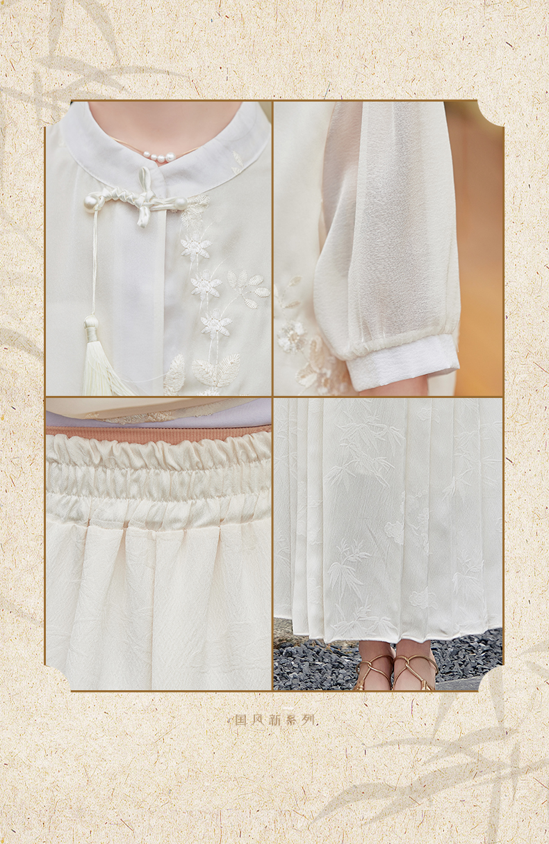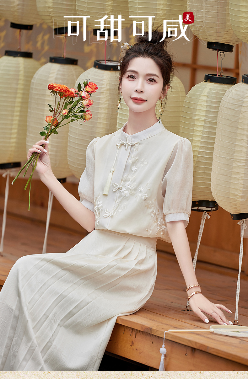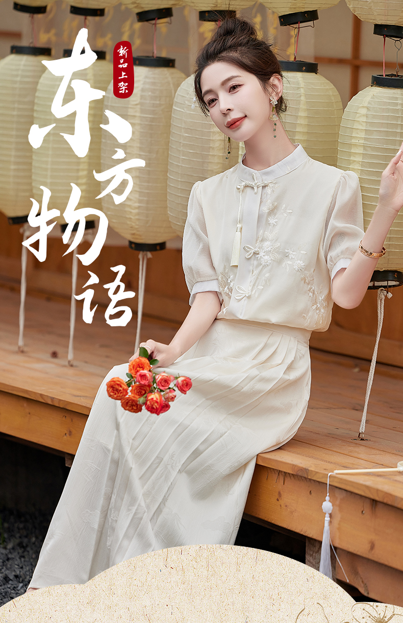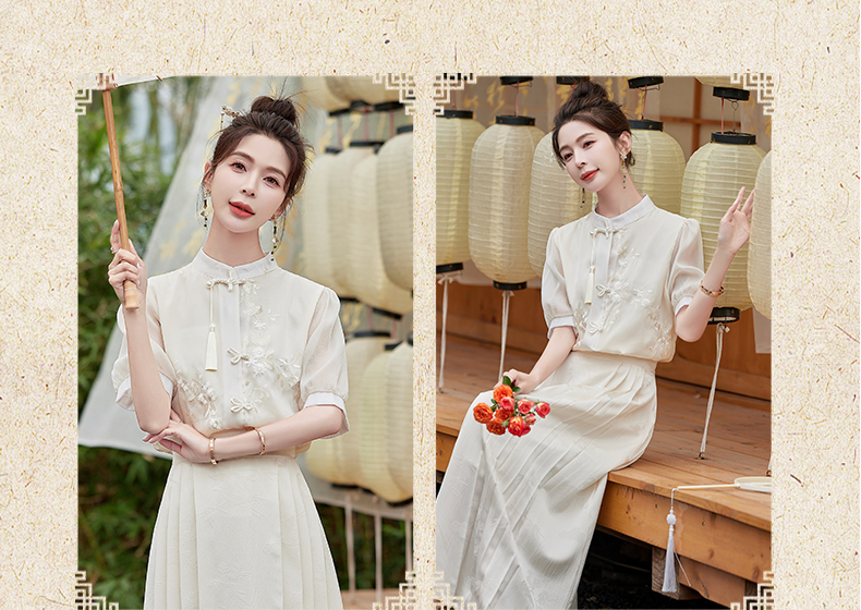 复古新中式,透气设计感流苏重工刺绣上衣裙子两件套HR-ZMFS24320