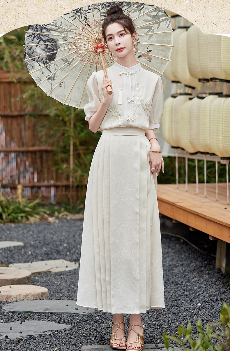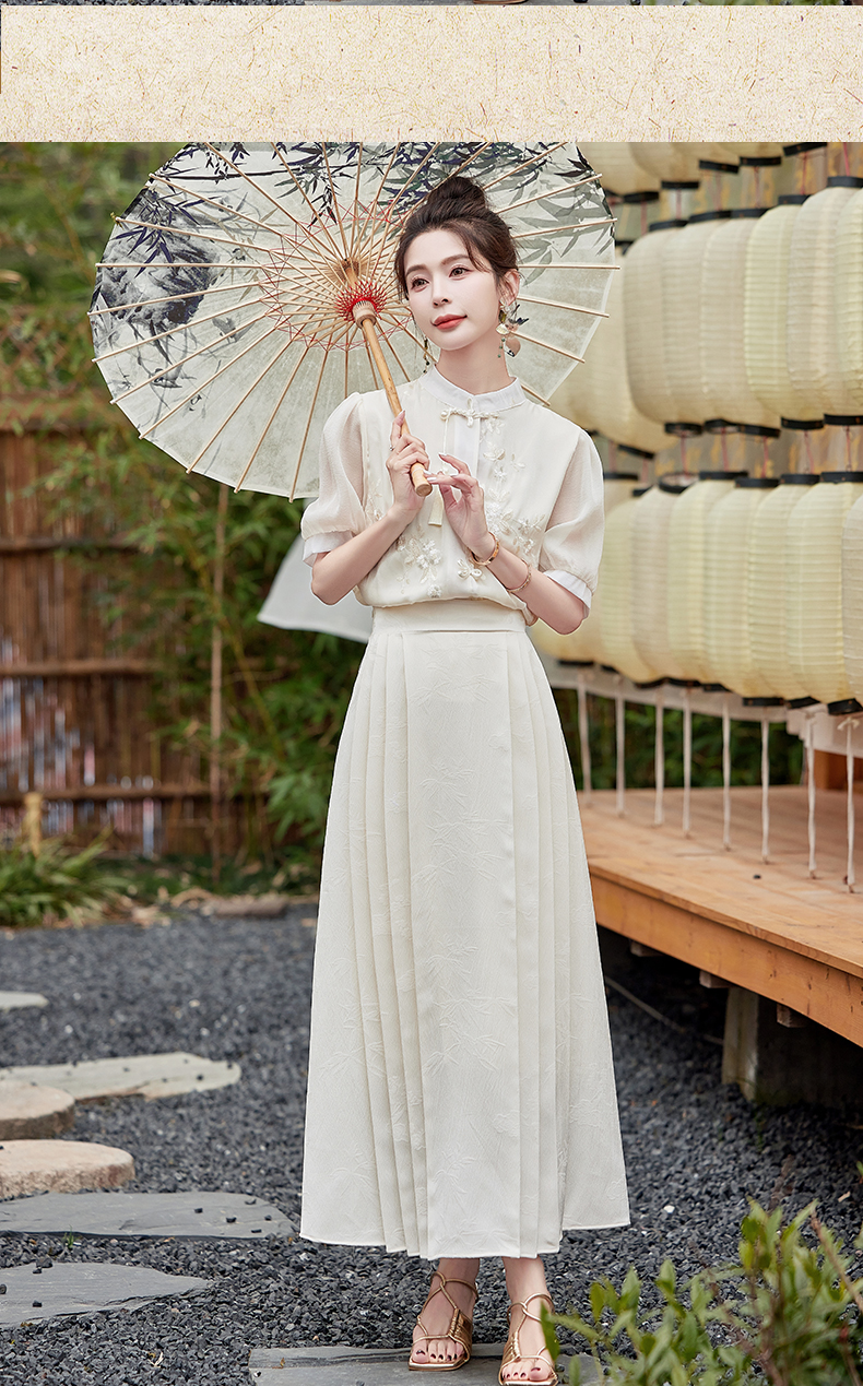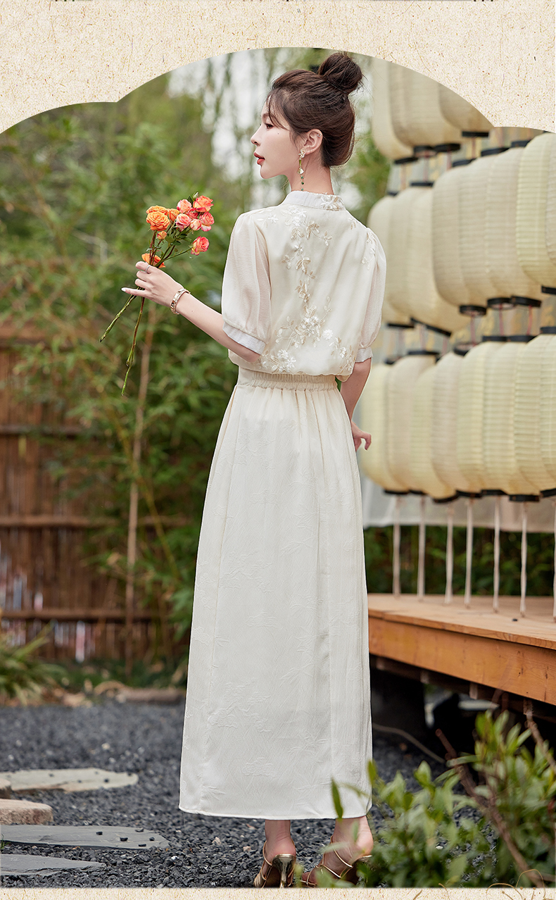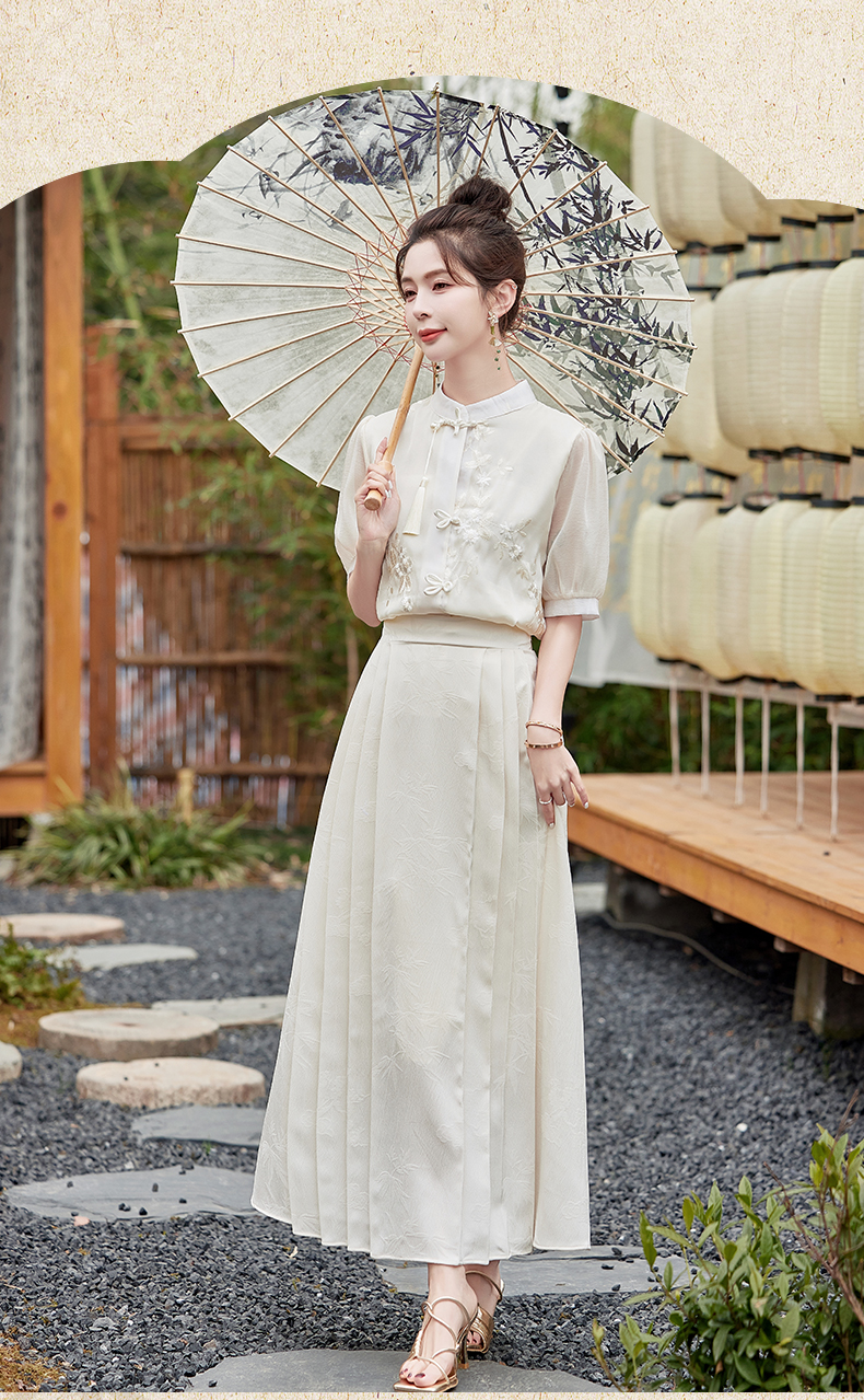 复古新中式,透气设计感流苏重工刺绣上衣裙子两件套HR-ZMFS24320