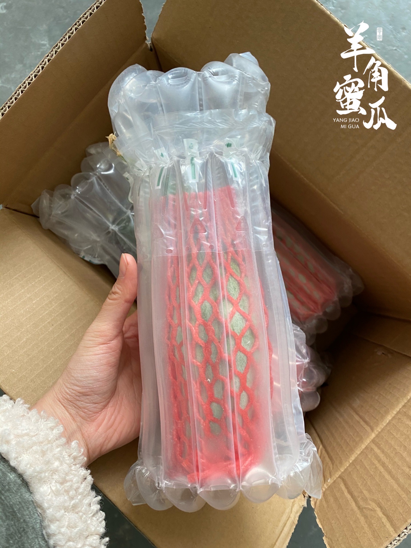 蜜甜瓜稍用力一按,整个瓜就破开了,果皮薄脆、果肉脆嫩。正是因为它非常“娇嫩”,所以每颗瓜果我们都用防摔防磕碰的真空气泡柱包装,最大程度保障运输途中不破损!