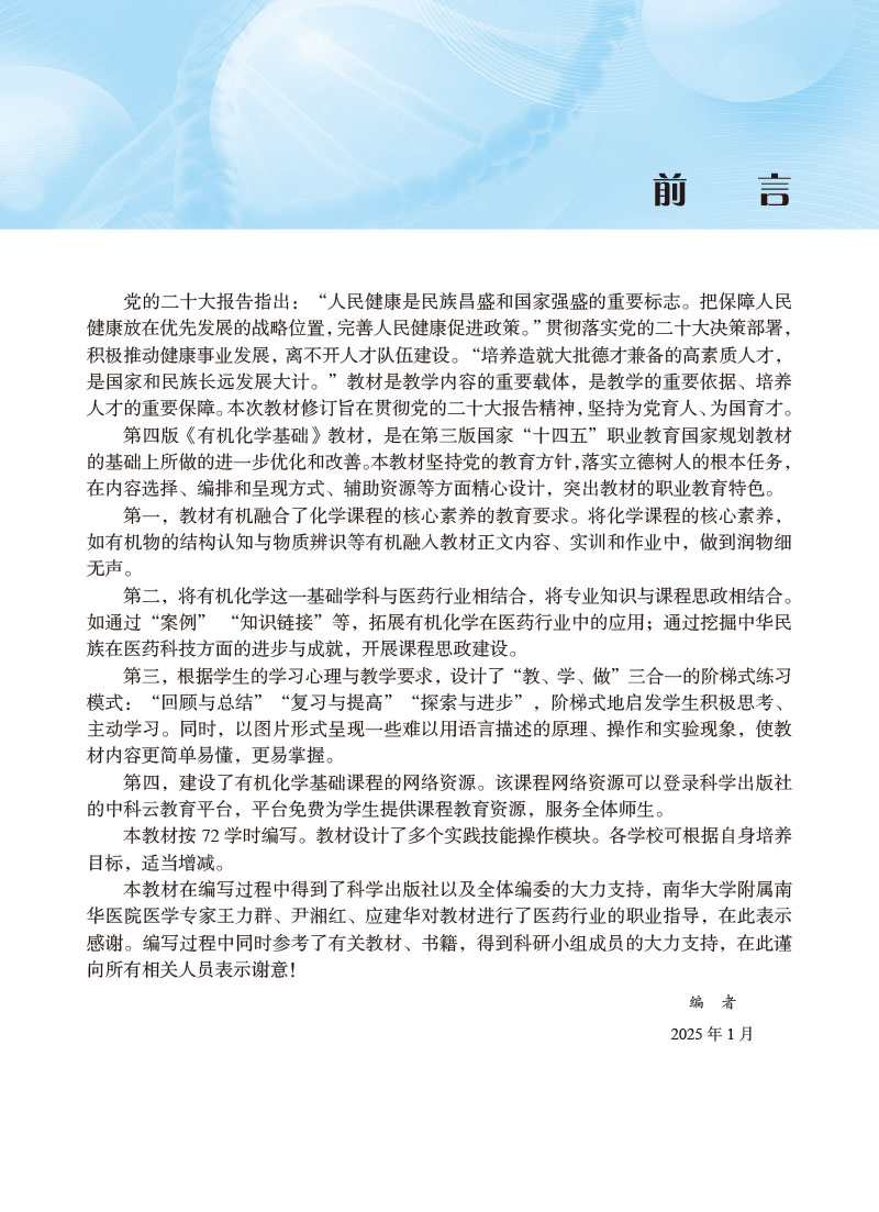 有机化学基础 第4四版 李湘苏 供职业教育药剂制药技术应用医学检验技术医学生物技术及相关专业使用 9787030811554科学出版社
