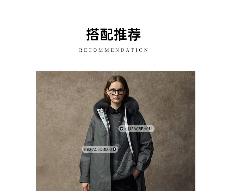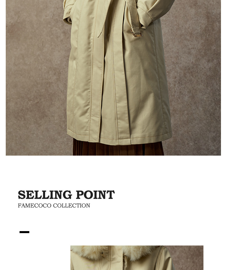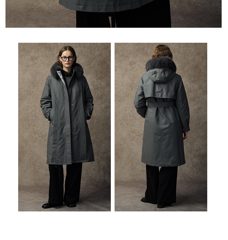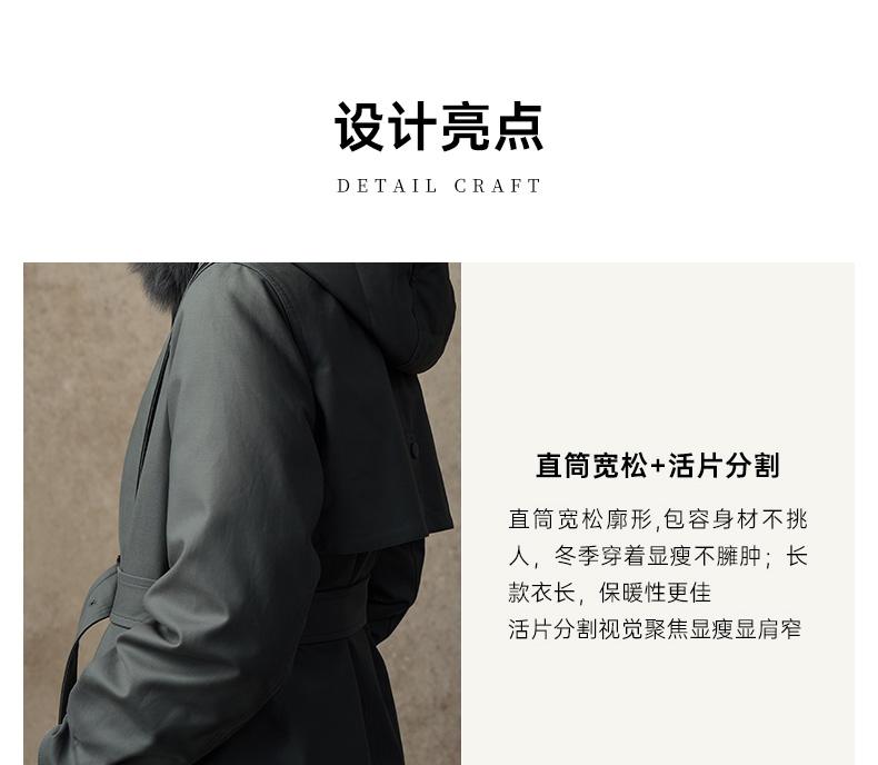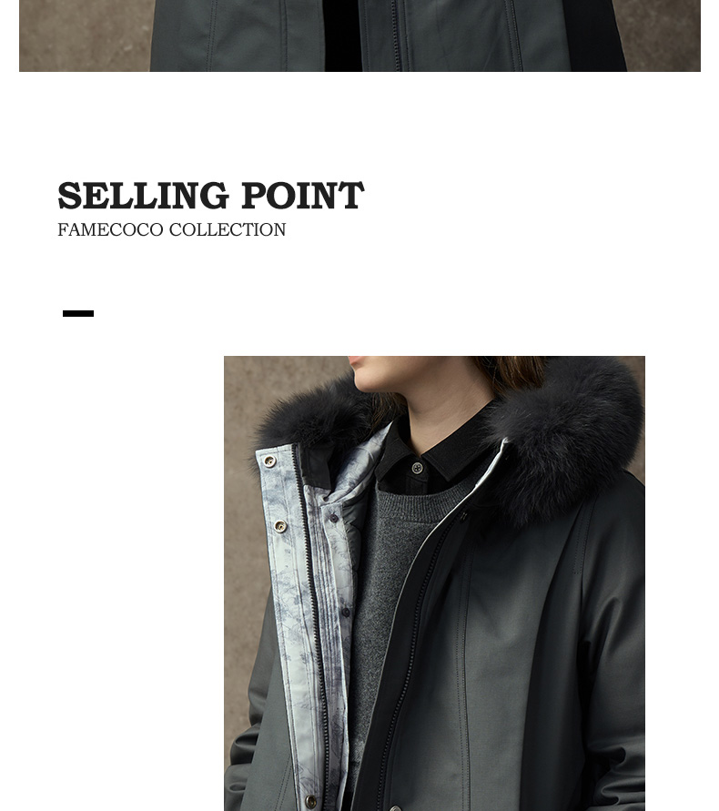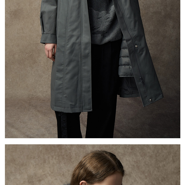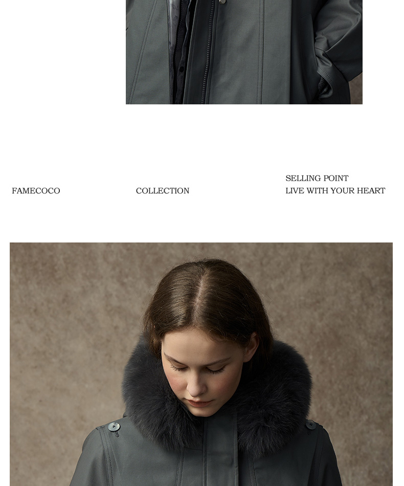 Famecoco范可儿连帽派克长款羽绒服90绒保暖可拆胆FAC8AH010