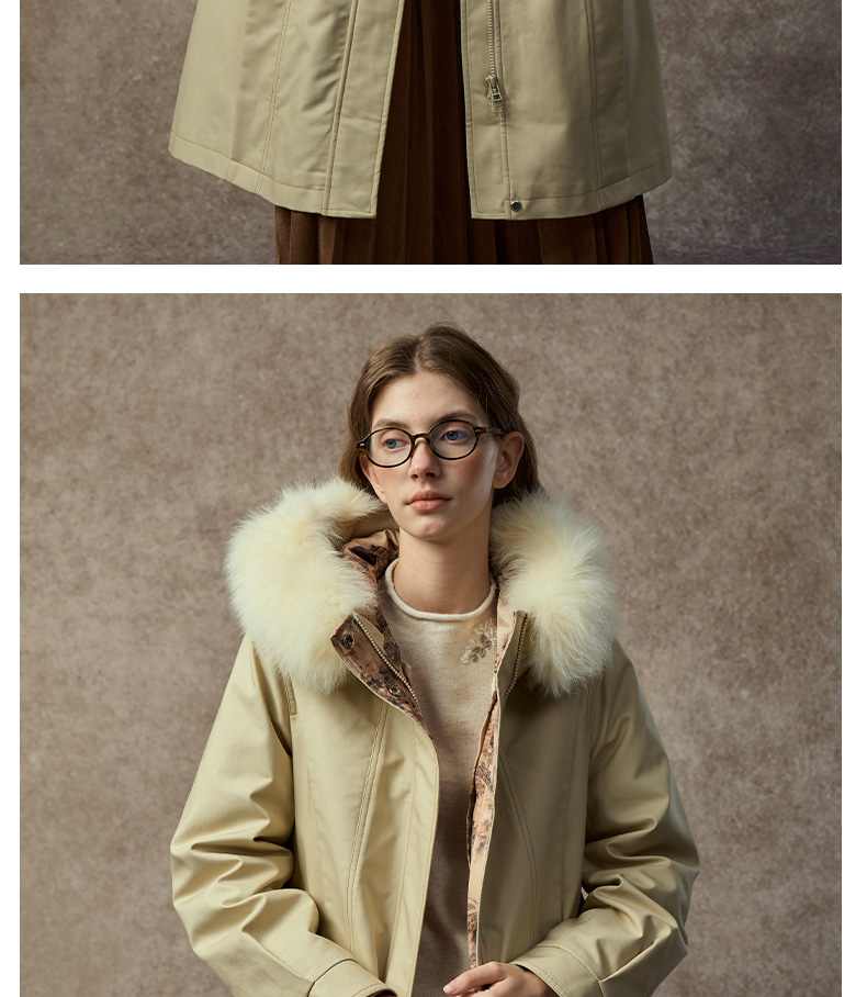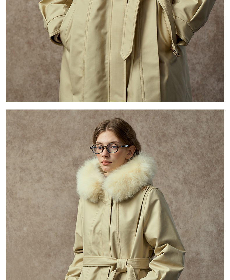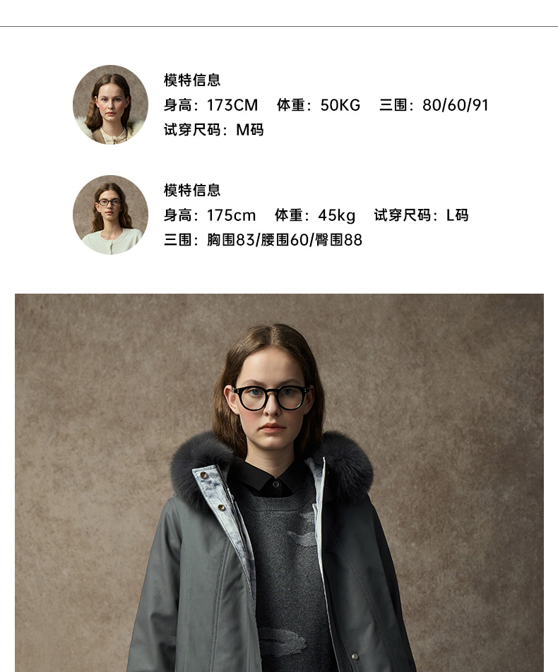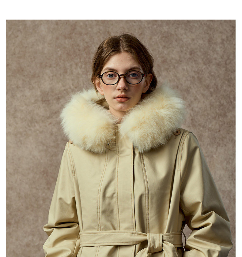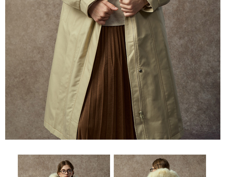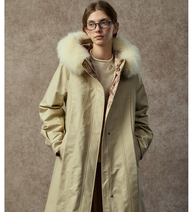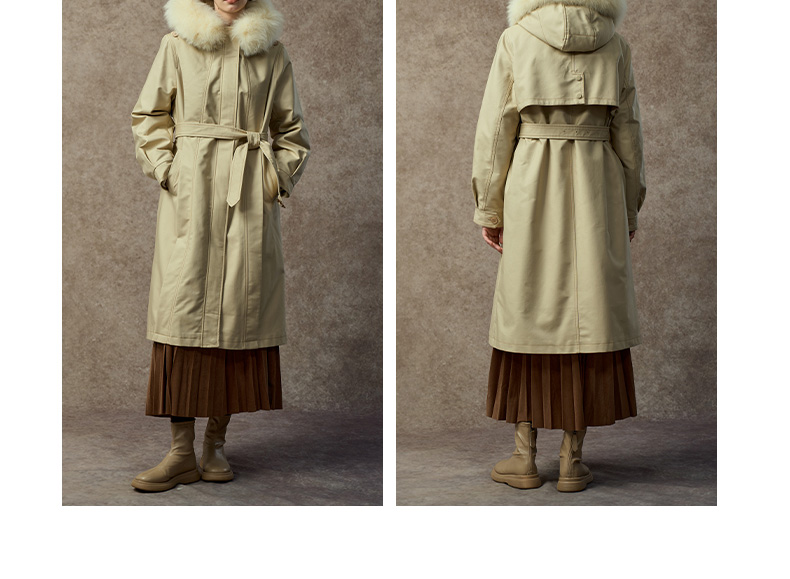 Famecoco范可儿连帽派克长款羽绒服90绒保暖可拆胆FAC8AH010