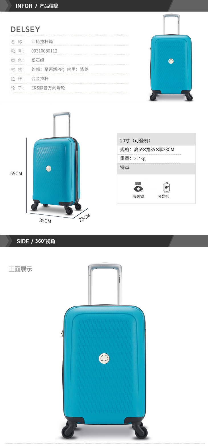DELSEY法国大使 时尚旅行箱行李箱 四轮拉杆箱 20寸蓝色00310080112