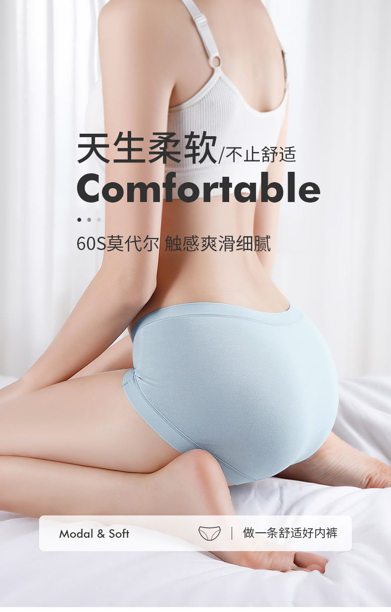 【60S莫代尔触感爽滑细腻】60支兰精莫代尔女士内裤纯棉裆抗菌透气少女三角裤冰丝感无痕裤头,一片式臀部包裹 舒适不夹臀。ry