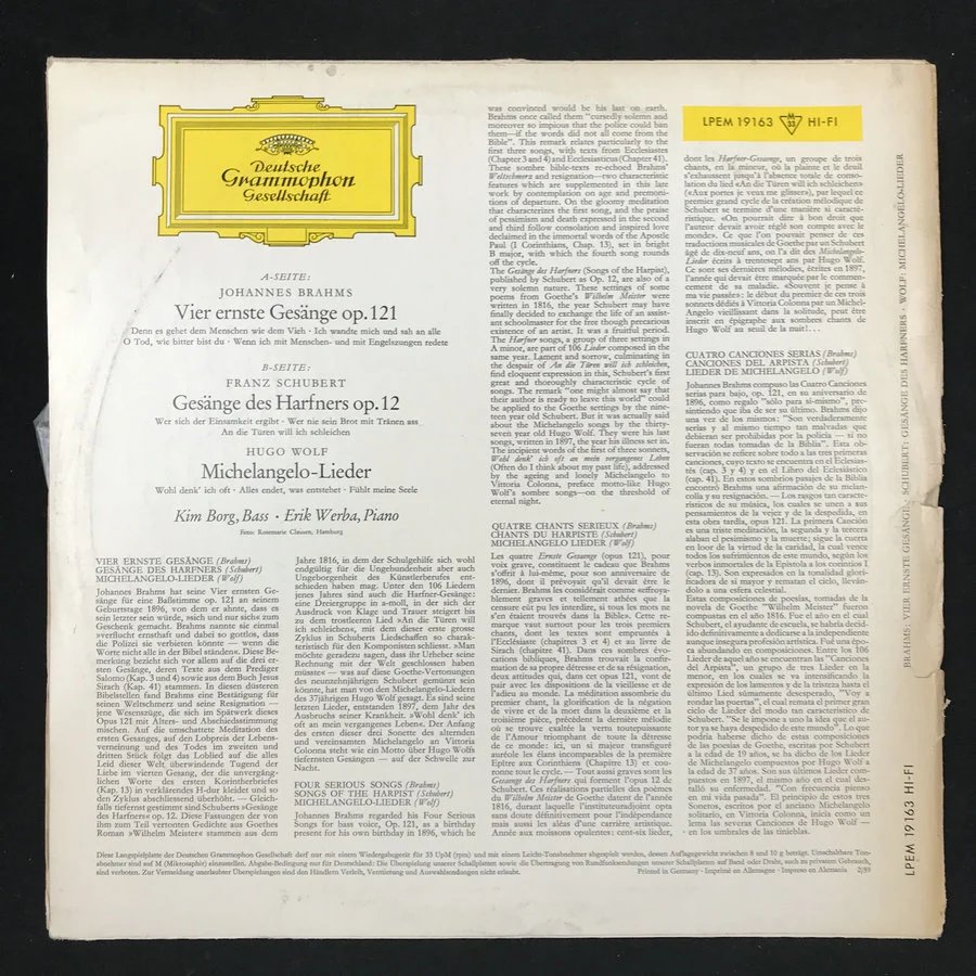 LP黑胶唱片 勃拉姆斯《四首严肃的歌Op.121》 舒伯特《竖琴手之歌Op.12》 雨果·沃尔夫《米开朗基罗歌集》