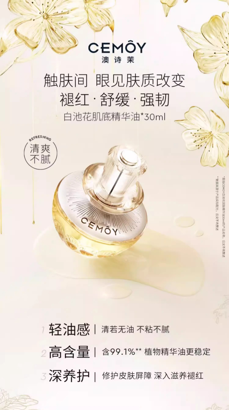Cemoy澳诗茉白池花肌底精华油 以油养肤 先油后水 事半功倍