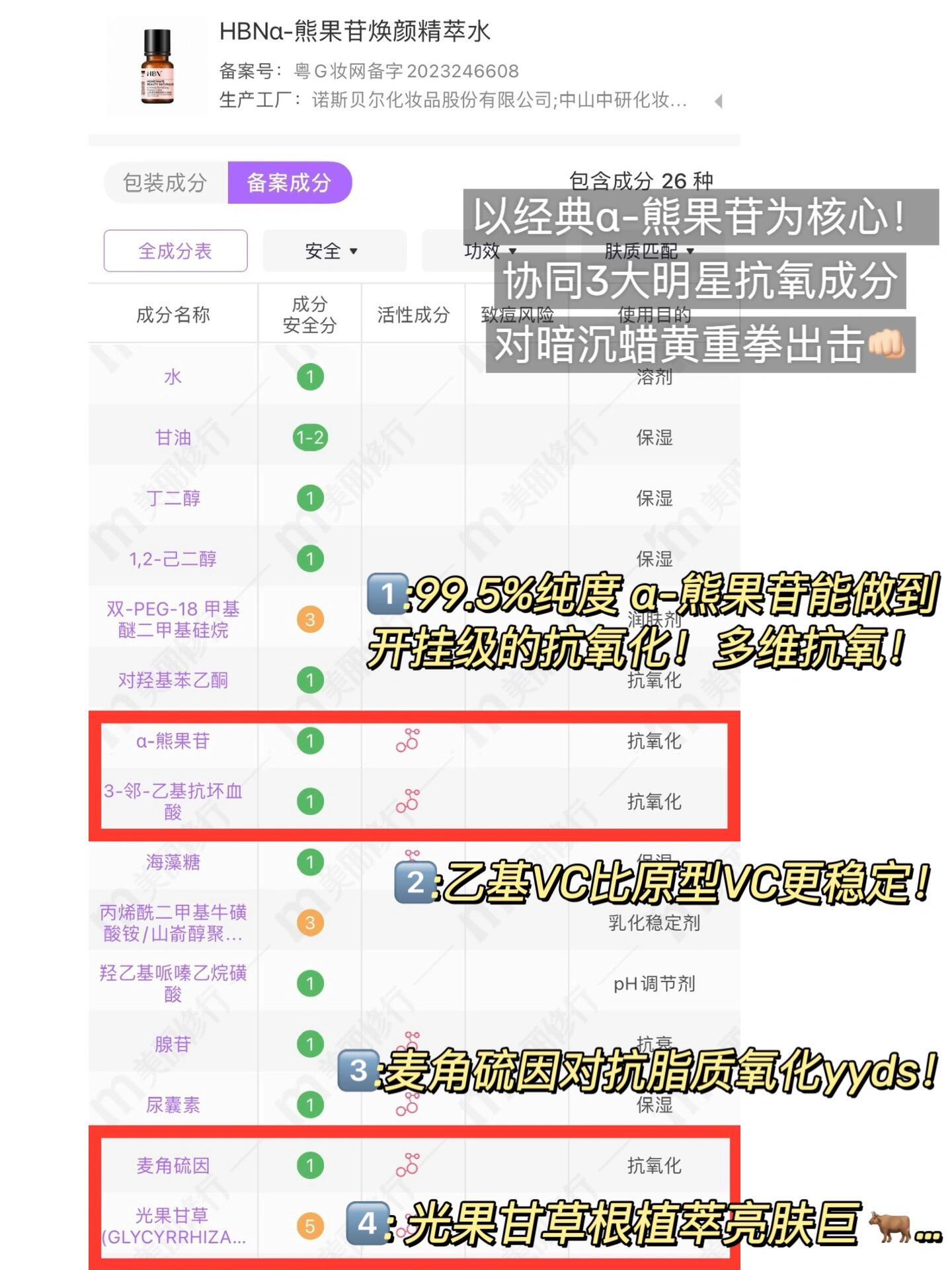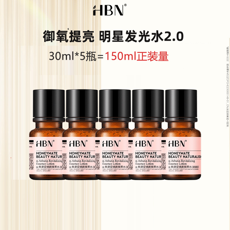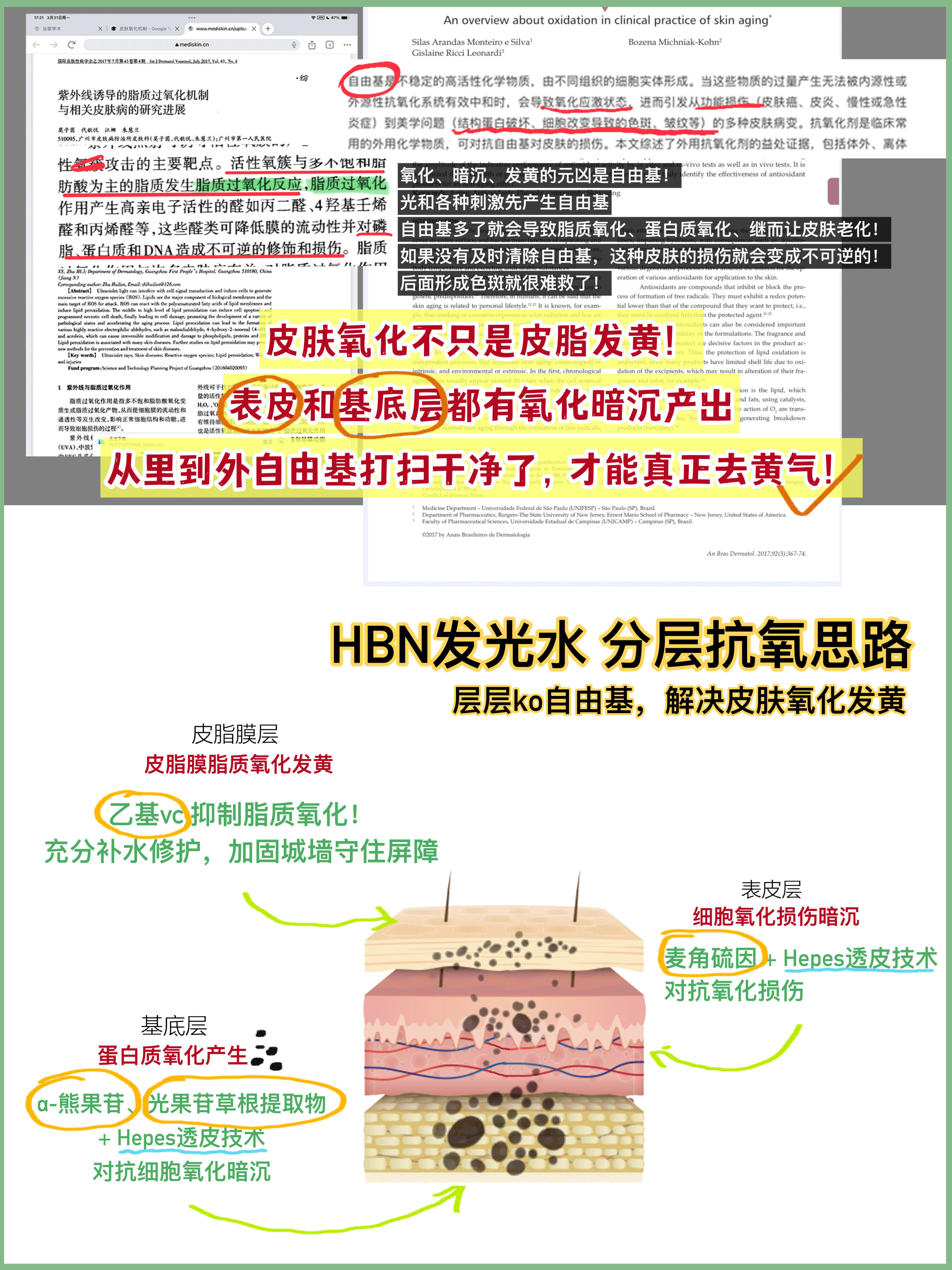 ✅ HBN发光水:乙基 VC(VC 衍生物天花板)+德国DSM高纯α- 熊果苷+光果甘草定+高纯麦角硫因