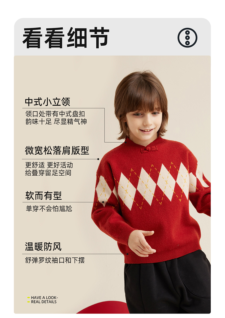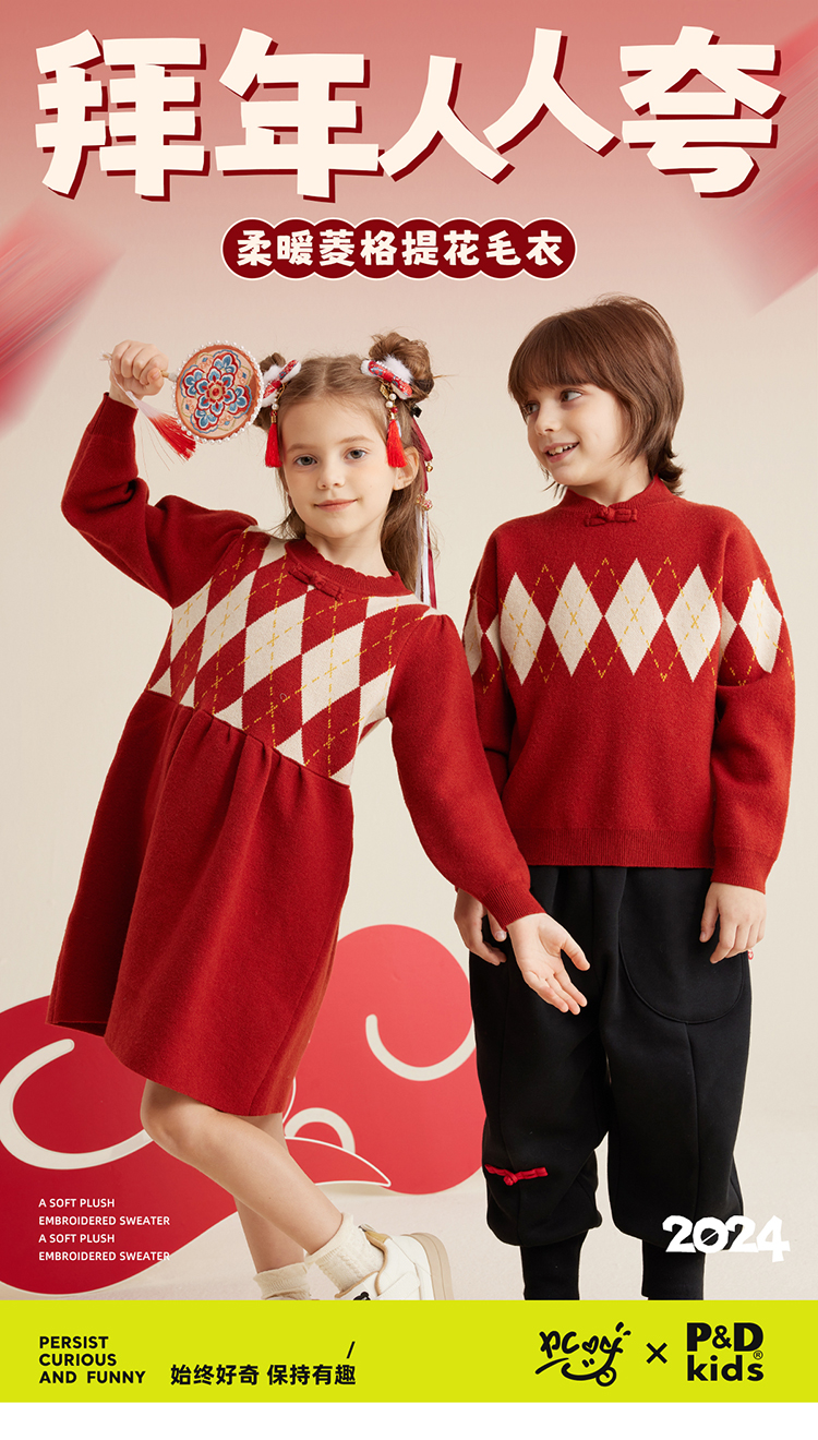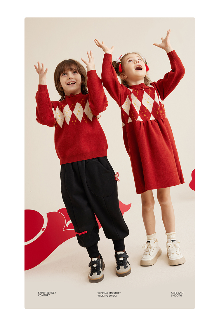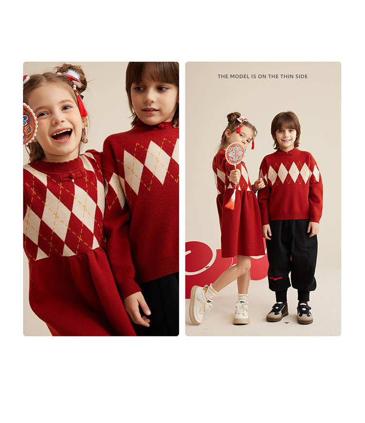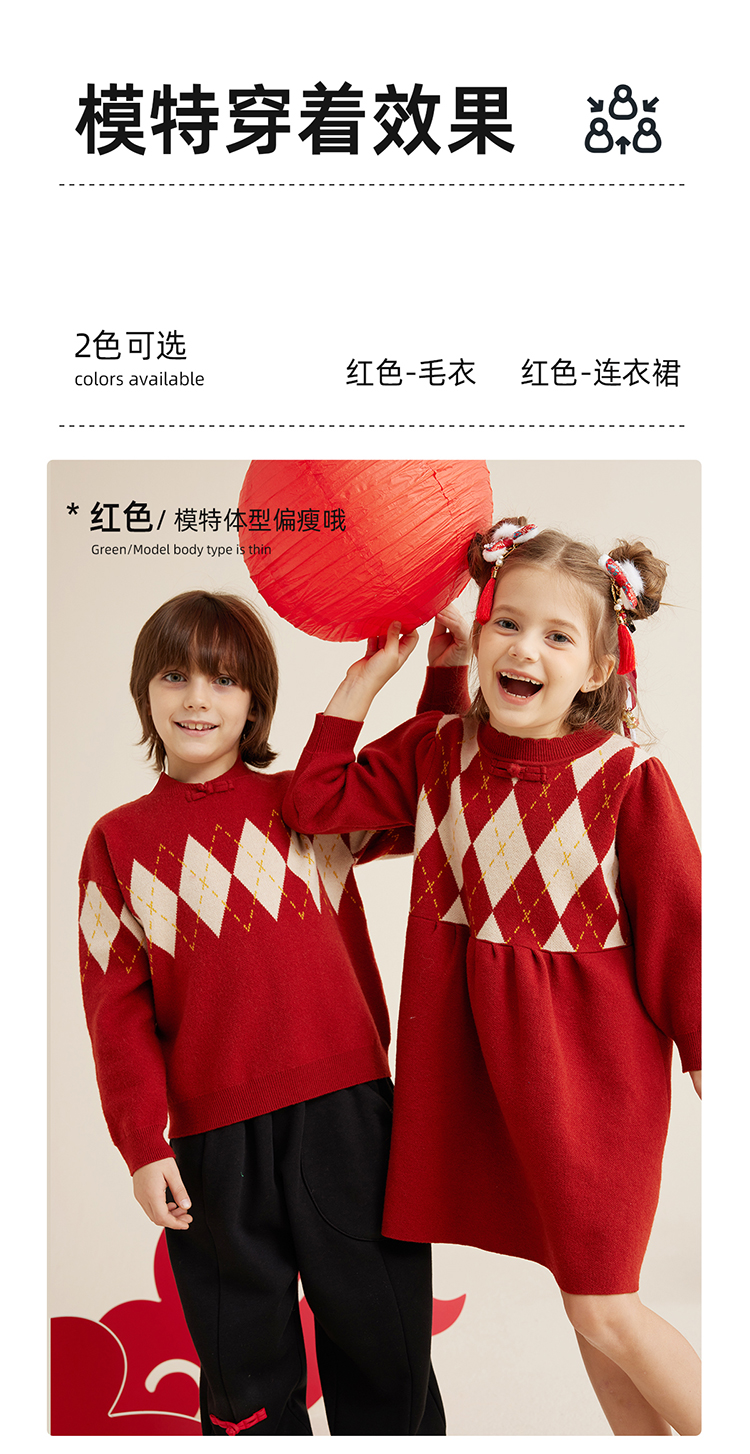 【亲子款 新年战袍】复古新中式新年毛衣 连衣裙兄妹装PDMY2301-PDQ2301