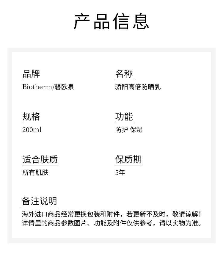 【预售 急单慎拍】Biotherm碧欧泉 新骄阳高倍防晒乳200ml SPF50+