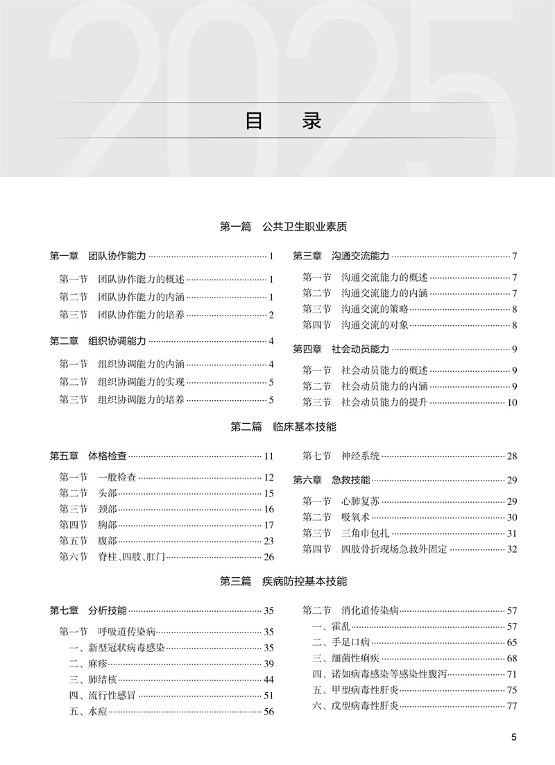 本书为国家医学考试中心组织专家根据新版大纲全面改编,内容权威、全面,适用于参加公共卫生类别执业医师考试的考生。全书按照最新修订的三站式考试方案编写,包括公共卫生职业素质、临床基本技能、公共卫生案例分析、公共卫生基本操作技能四章。其中临床基本技能部分又包括体格检查、辅助检查结果判读和现场急救技术。公共卫生案例分析部分包括大纲要求掌握的传染病、慢性非传染性疾病、职业病的病因、发病机制、临床特征、诊断、流行病学、疫情报告、个案调查和处置及预防等,以及营养与食品卫生、环境卫生的调查及处理。公共卫生基本操作技能部分包括个人防护、样品采集与现场检测、卫生处理,同时配有技能操作的视频网络增值服务。