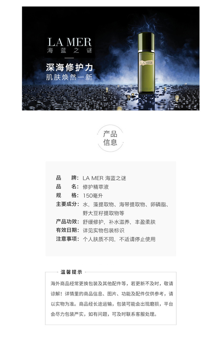 【无盒】LAMER海蓝之谜精萃水 修复精华水 精粹水肌肤维稳 补水保湿修复 150ml