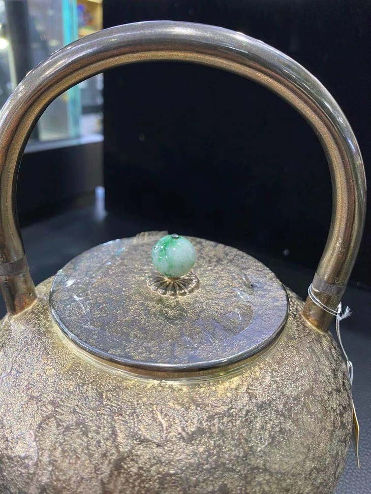璞圣堂 宝珠隔热石纹壶 S211 纯手工银器纯银999烧水壶 日本汤沸银瓶 口打出银壶茶具
