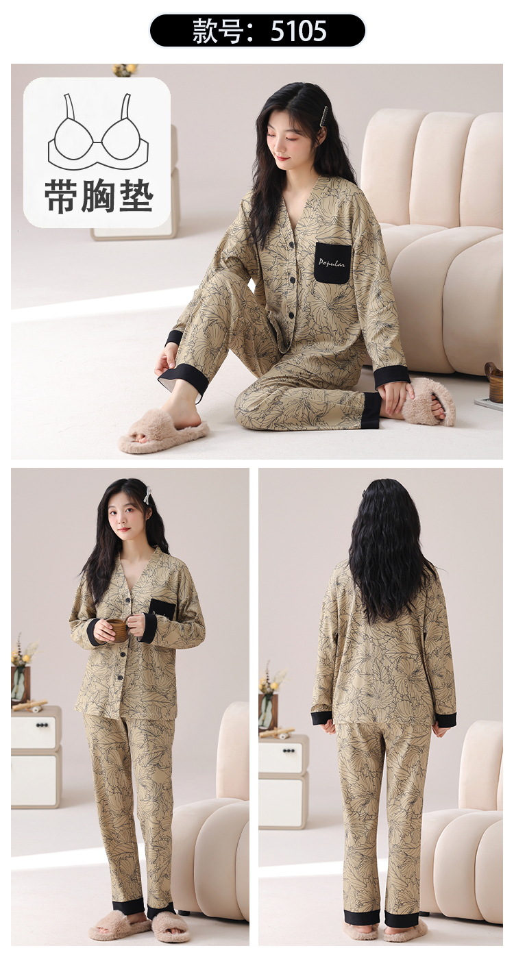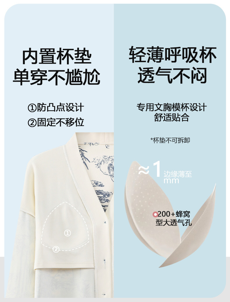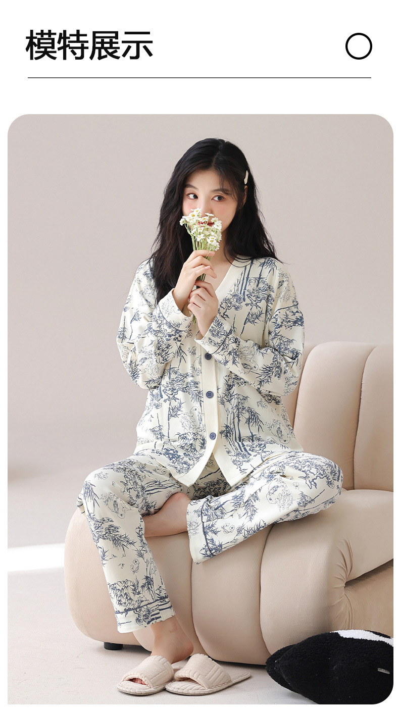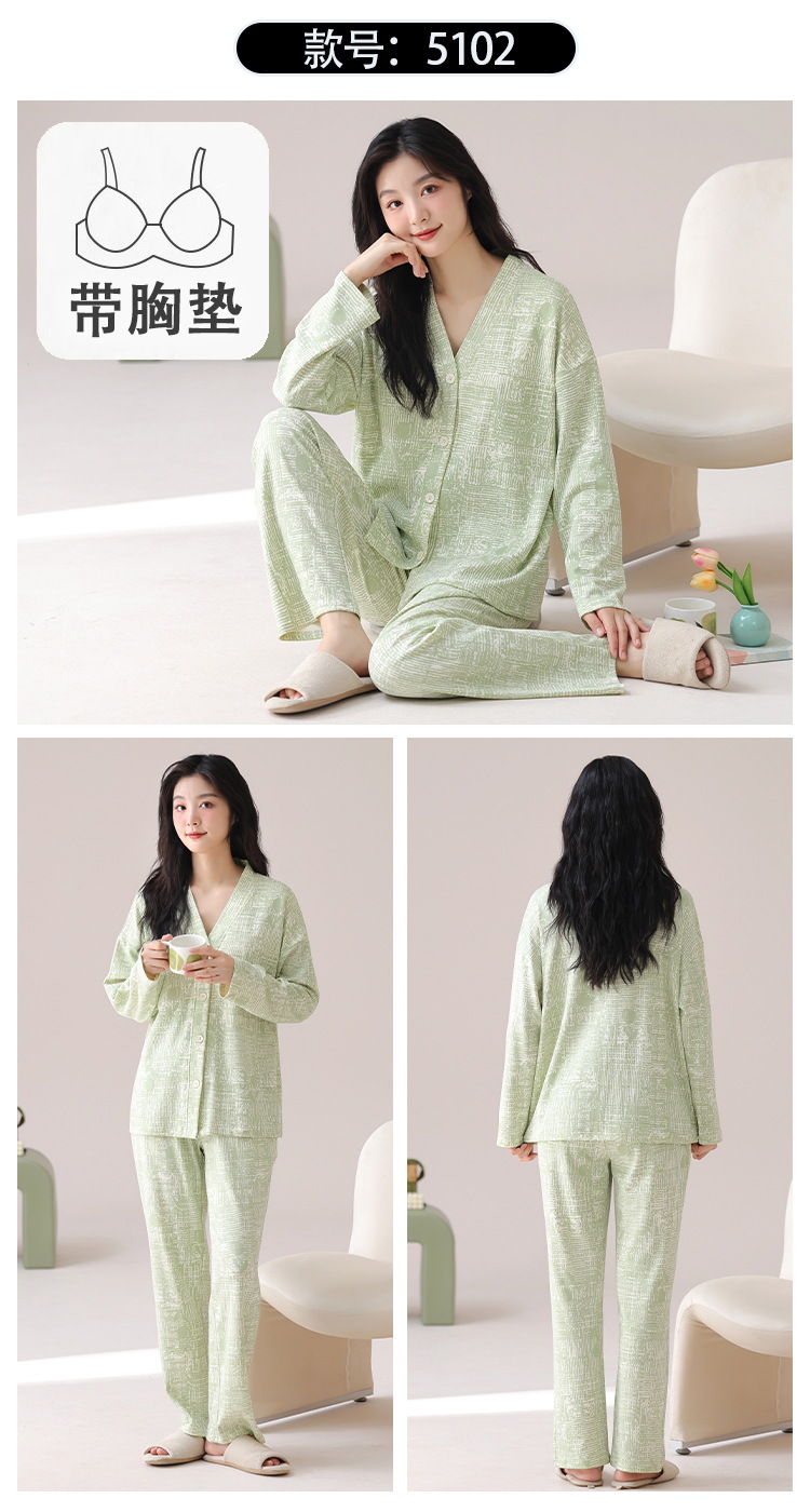 【新国风❗️V领开衫家居服套装】自带胸垫,罩杯一体,免穿文胸内衣!春秋新款和服睡衣女长袖长裤可外穿
