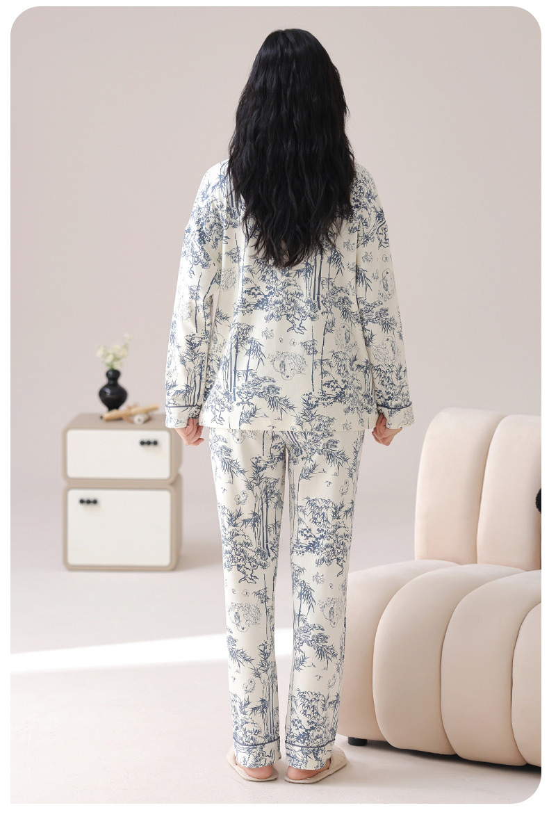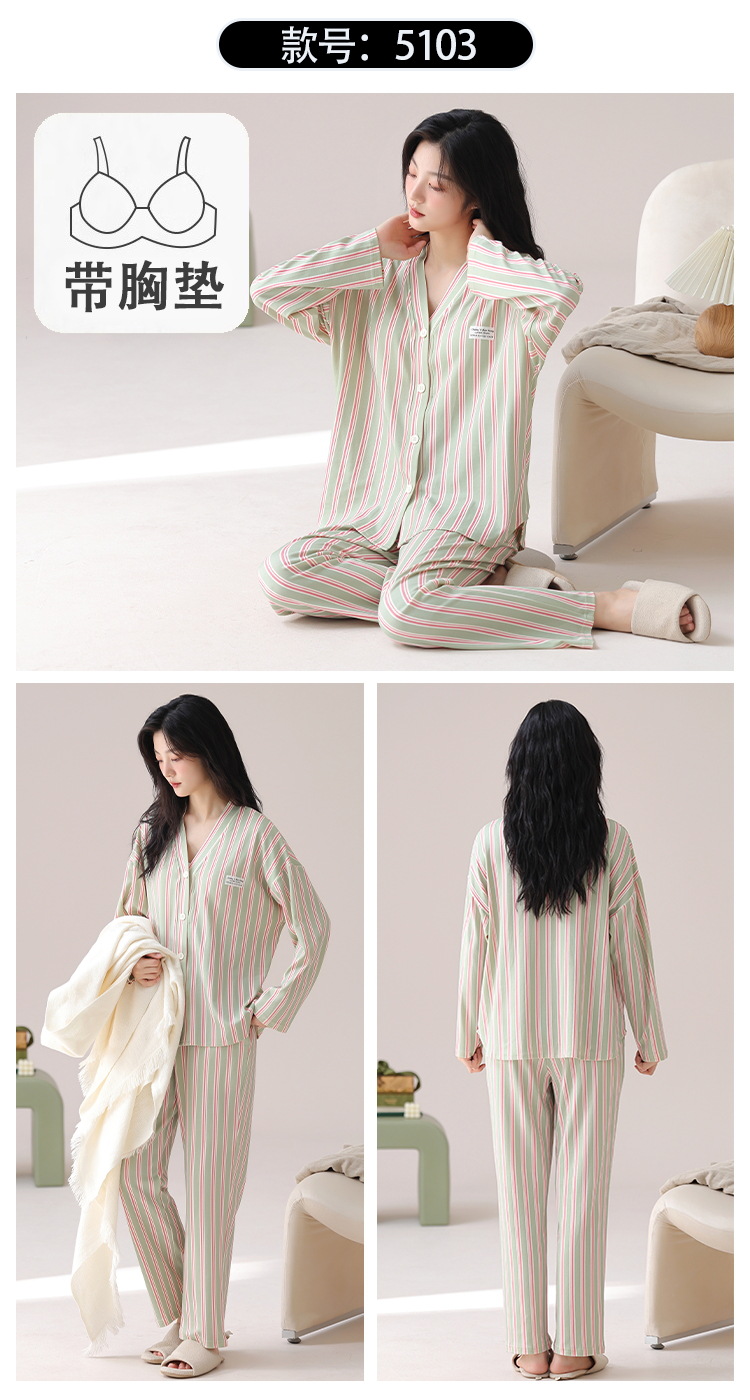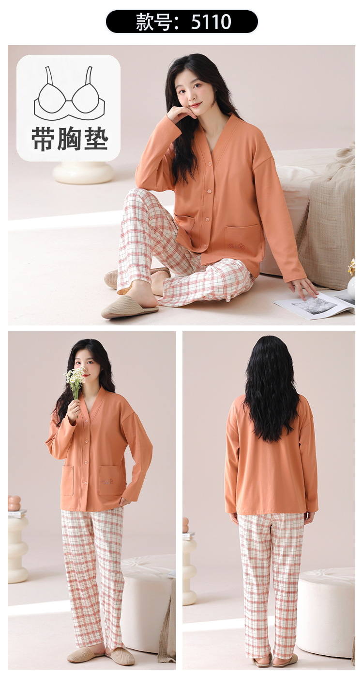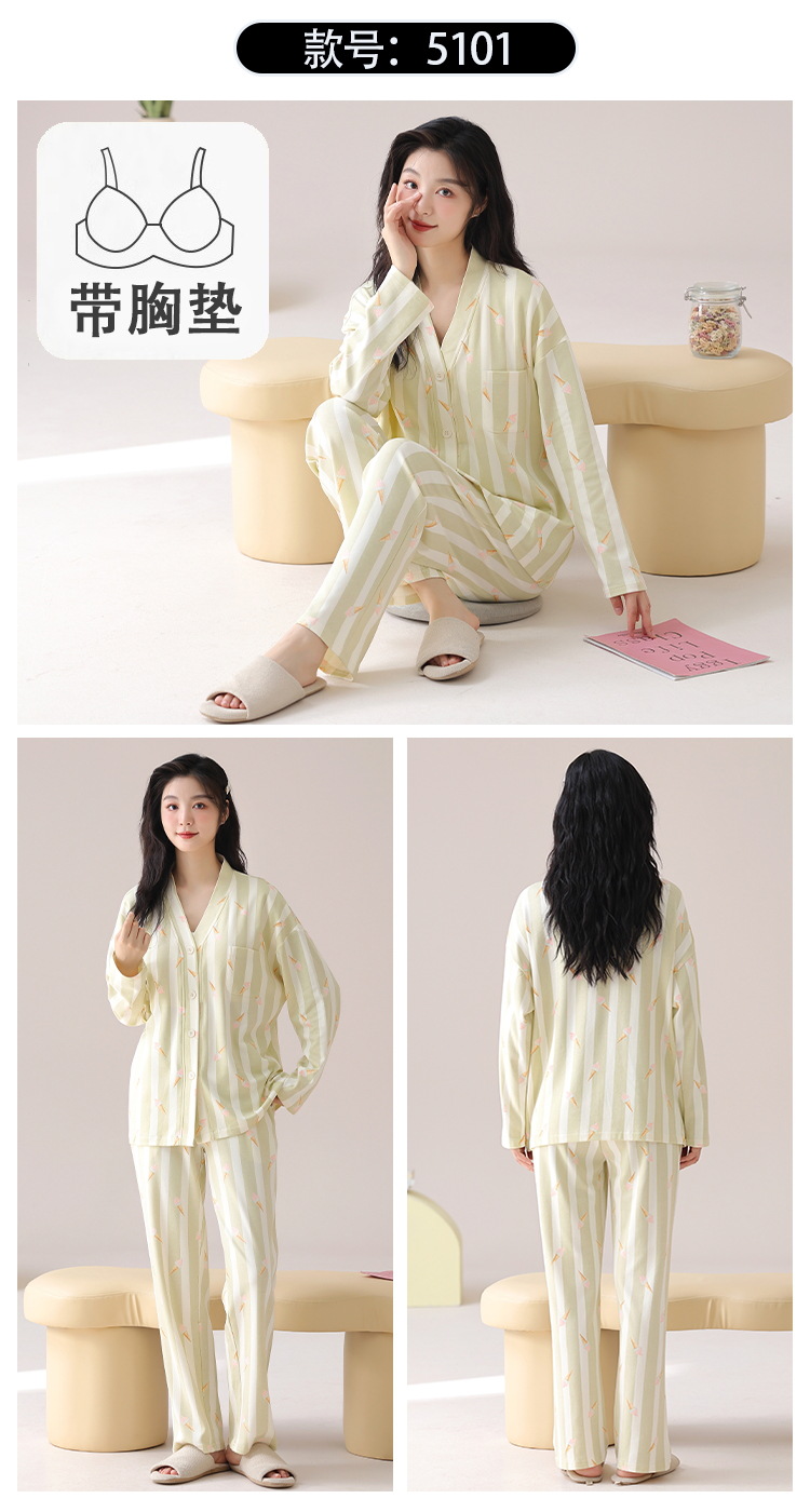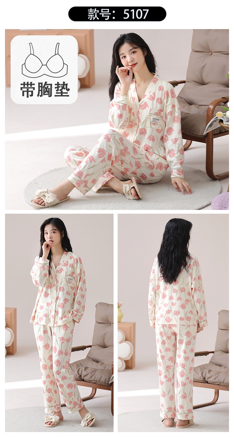 【新国风❗️V领开衫家居服套装】自带胸垫,罩杯一体,免穿文胸内衣!春秋新款和服睡衣女长袖长裤可外穿