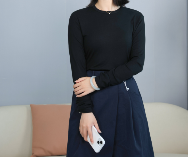 超显瘦女士春秋新款内搭高级感纯色圆领长袖显瘦百搭云感暖暖衫7A级物理抗菌简约利落
