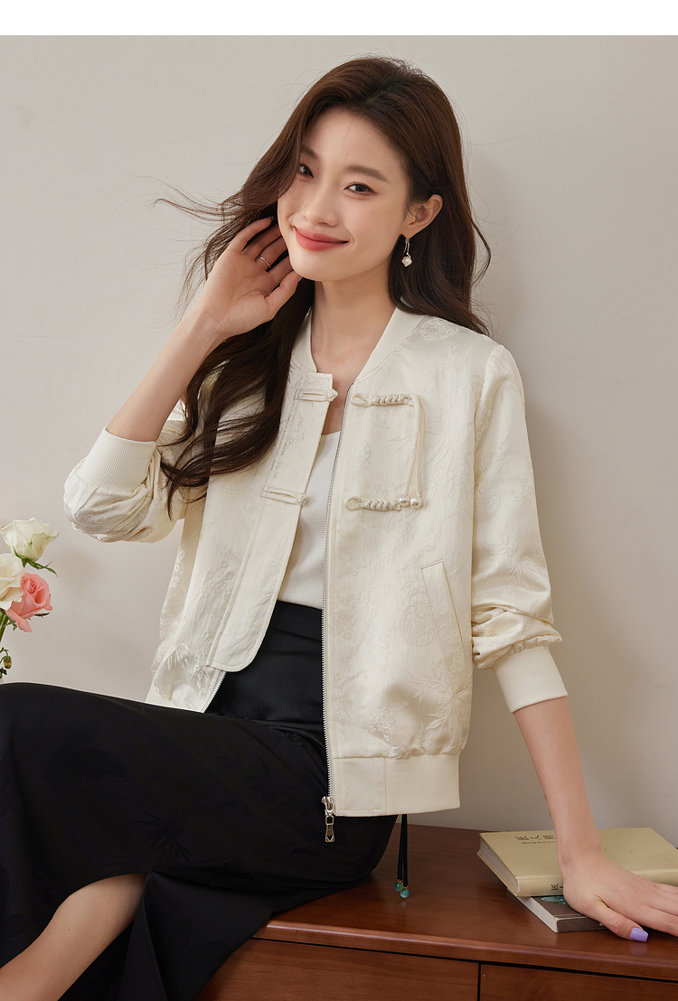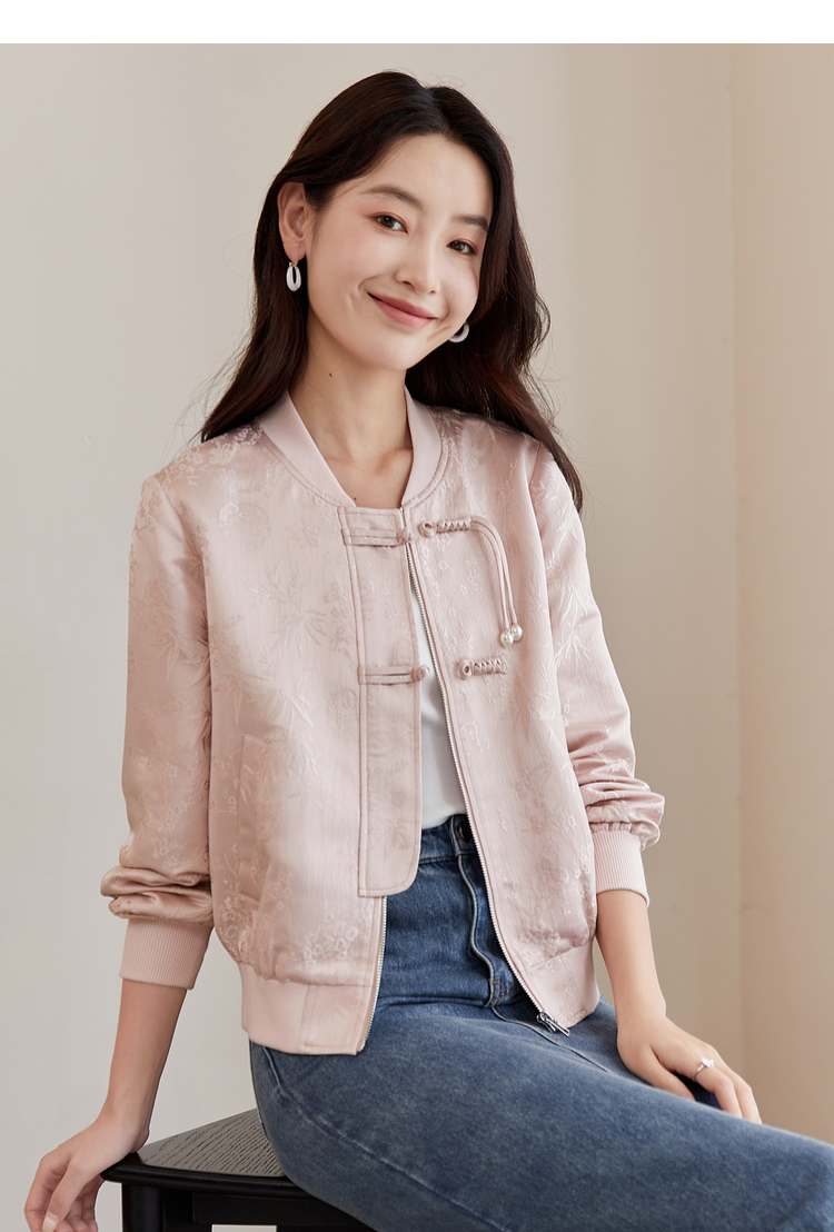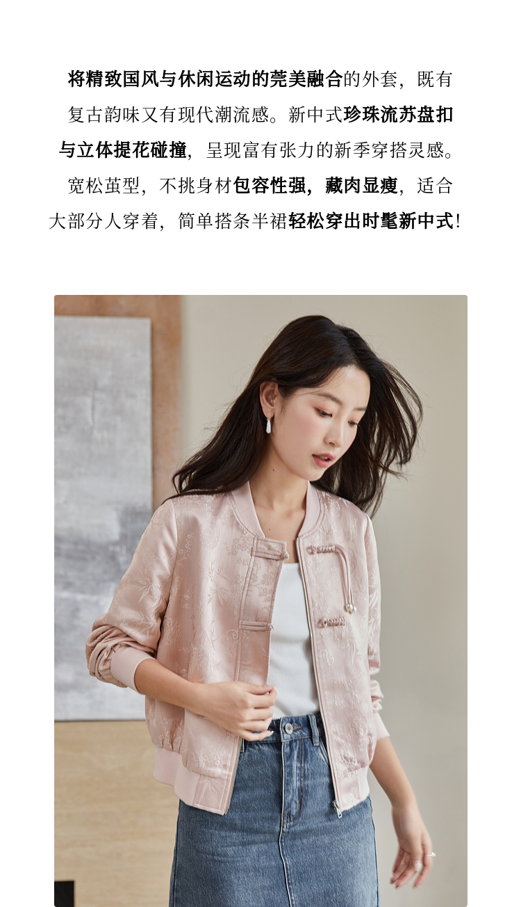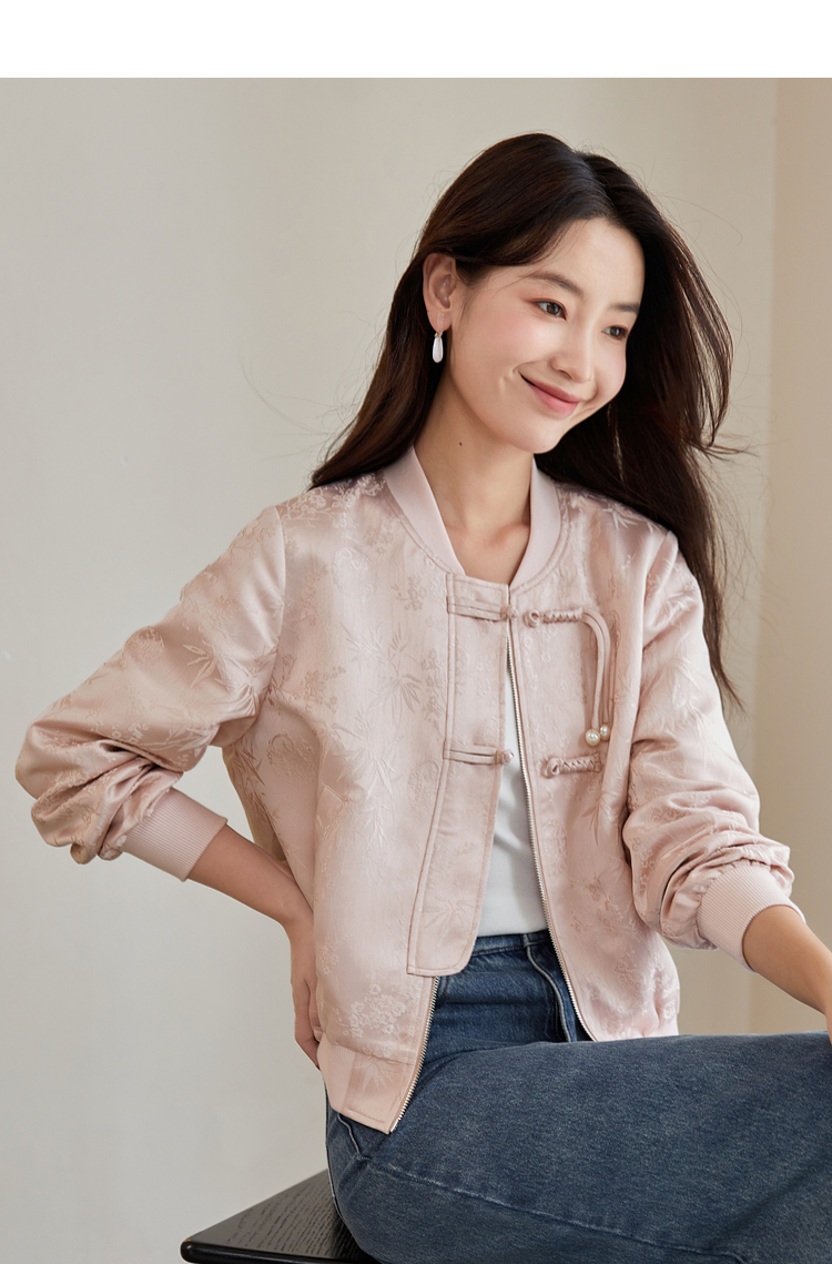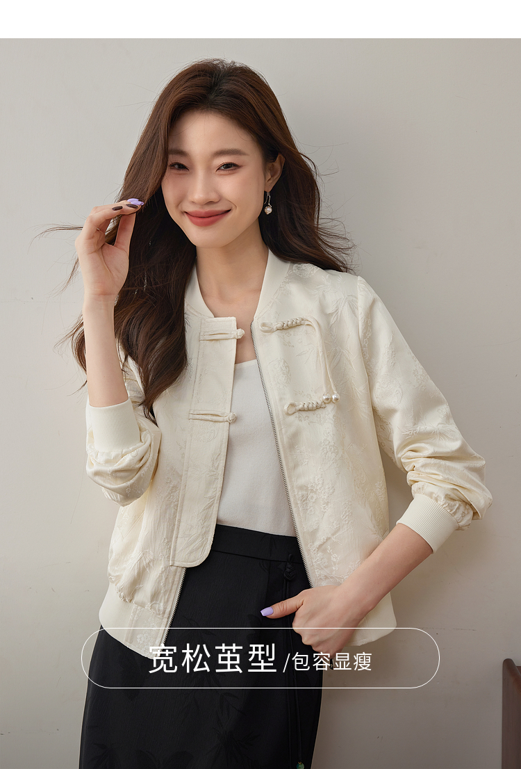 【129选3件,不退换】熙世界新中式提花短外套女2025秋季新款国风珍珠流苏盘扣夹克上衣