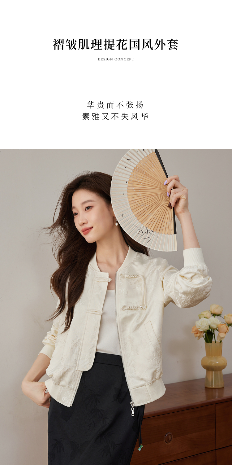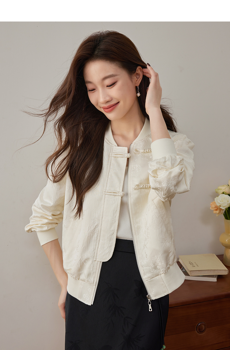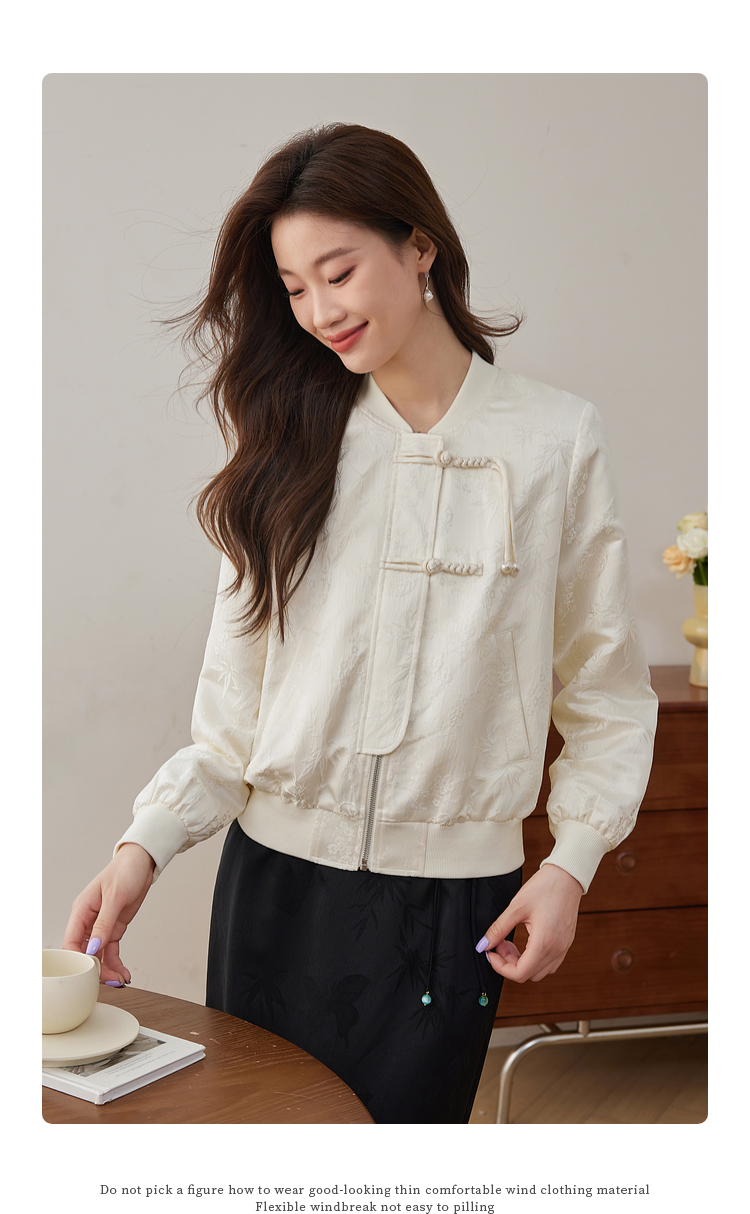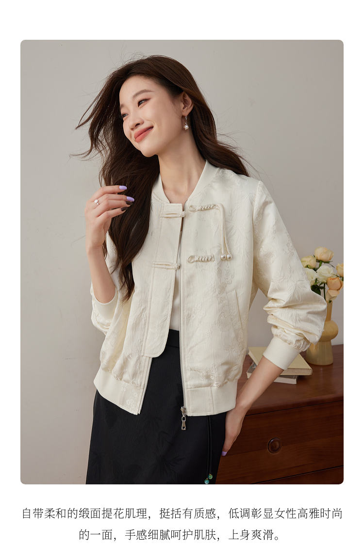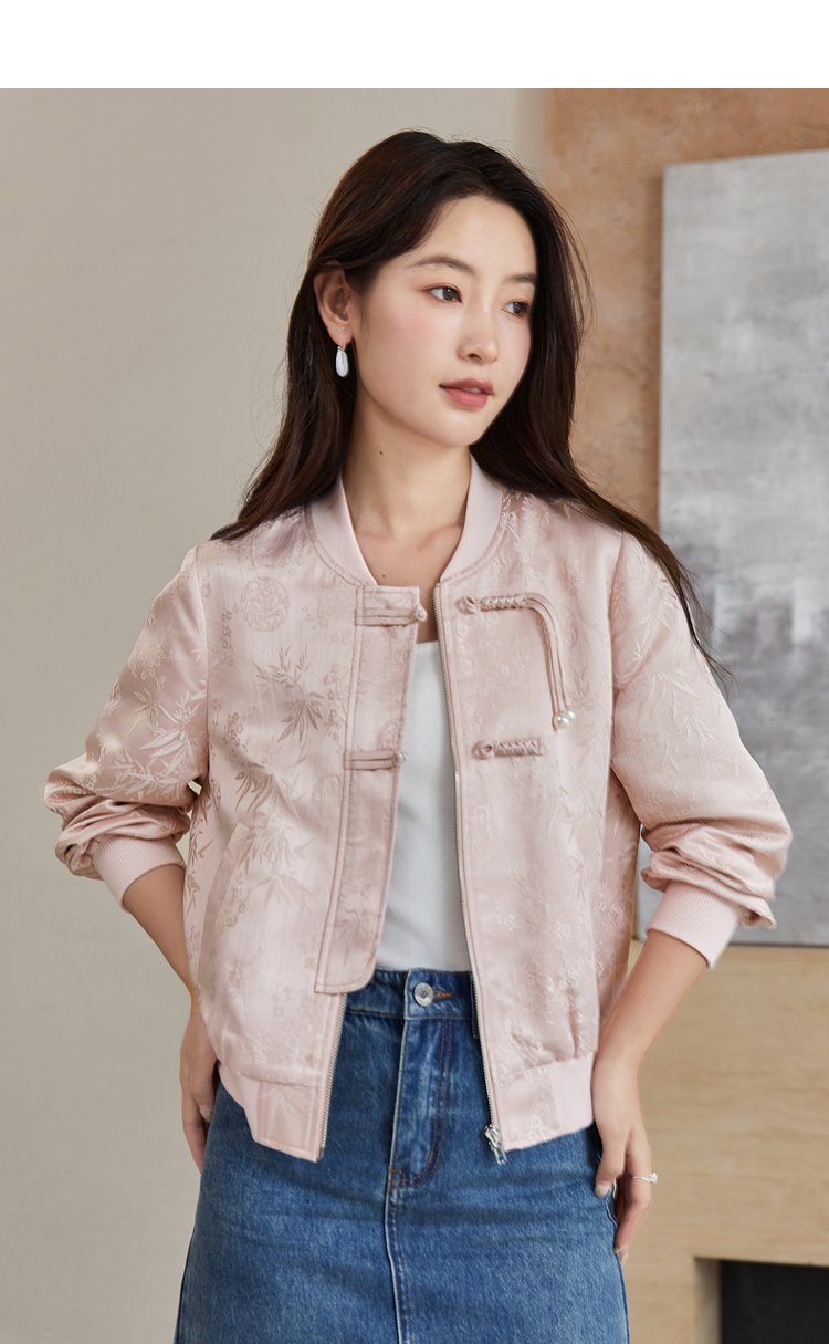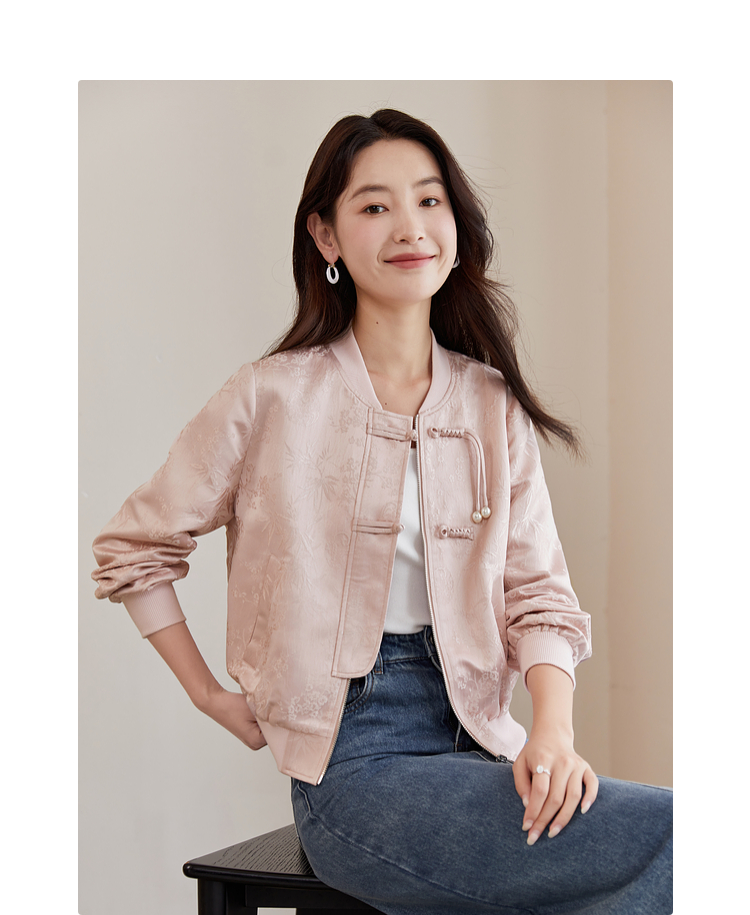 【129选3件,不退换】熙世界新中式提花短外套女2025秋季新款国风珍珠流苏盘扣夹克上衣