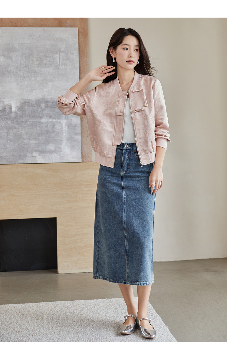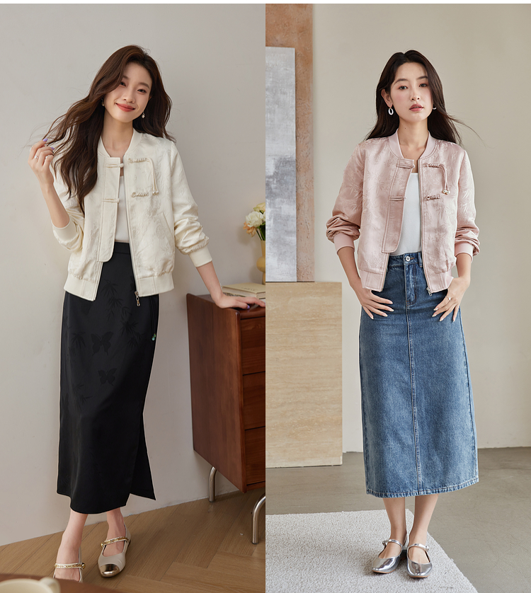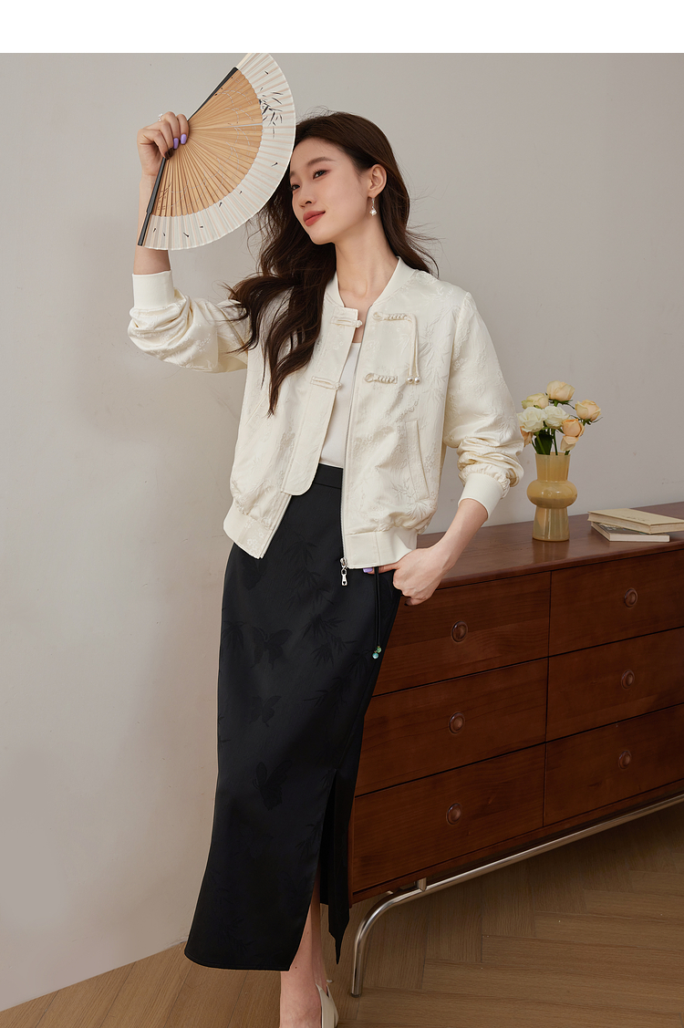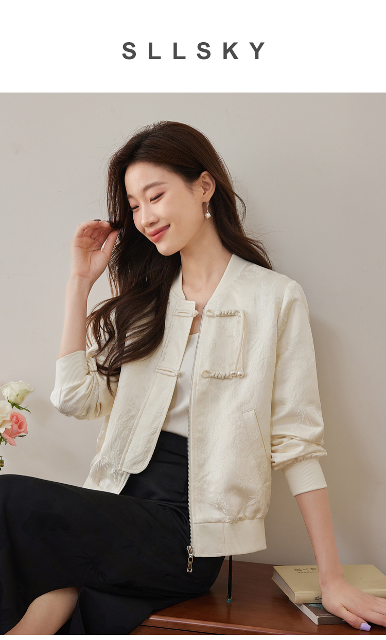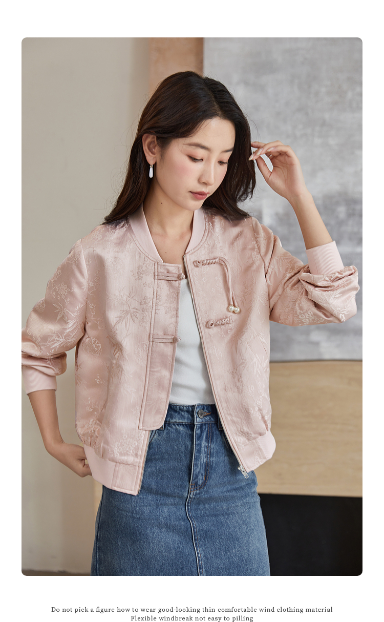 【129选3件,不退换】熙世界新中式提花短外套女2025秋季新款国风珍珠流苏盘扣夹克上衣