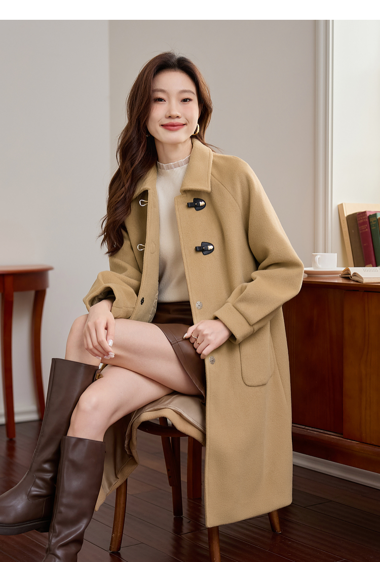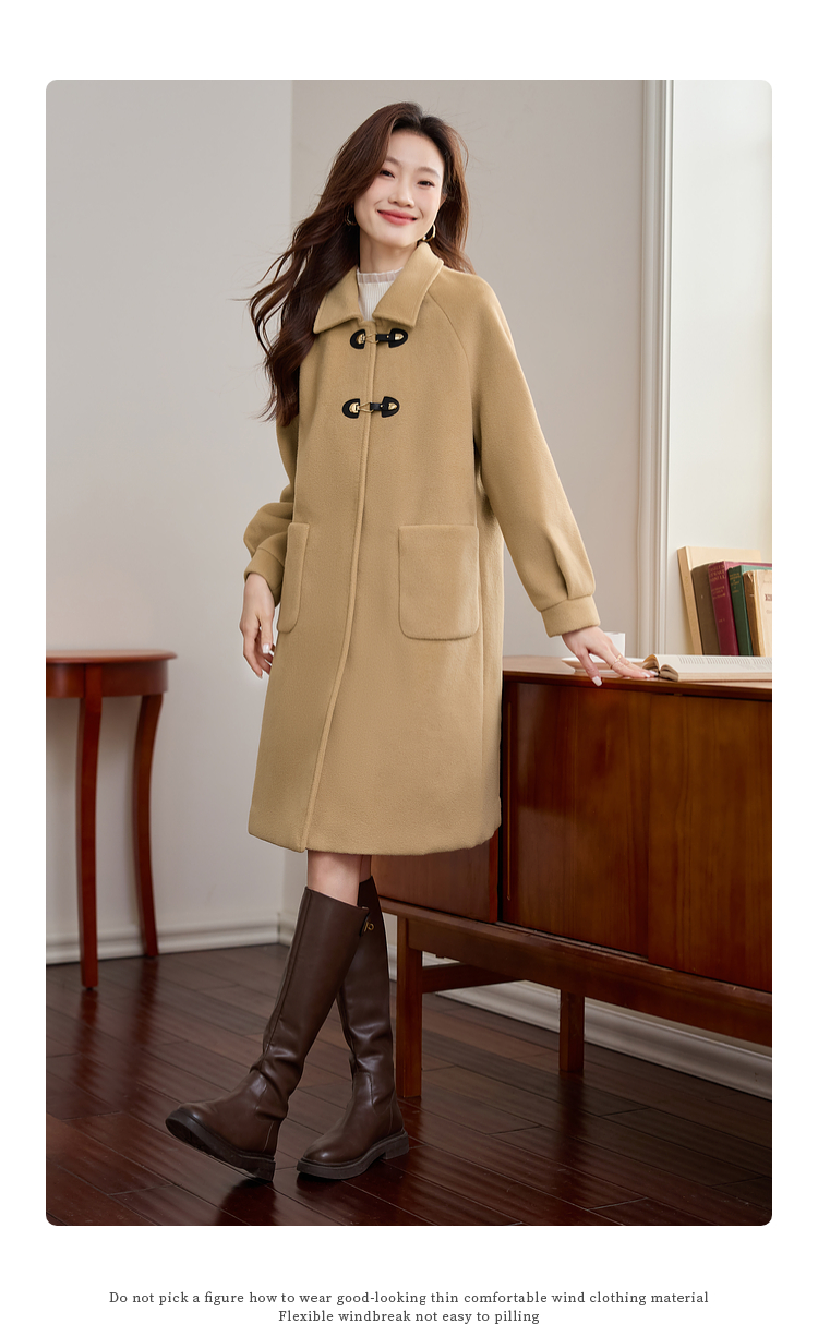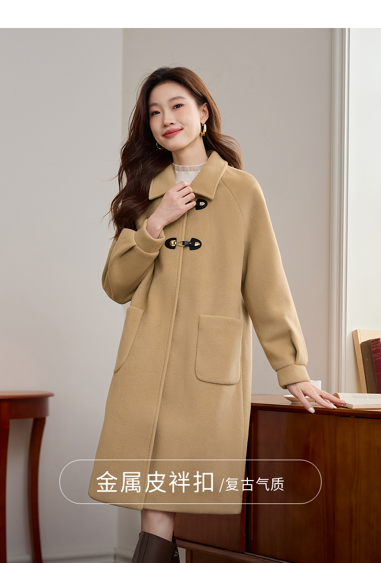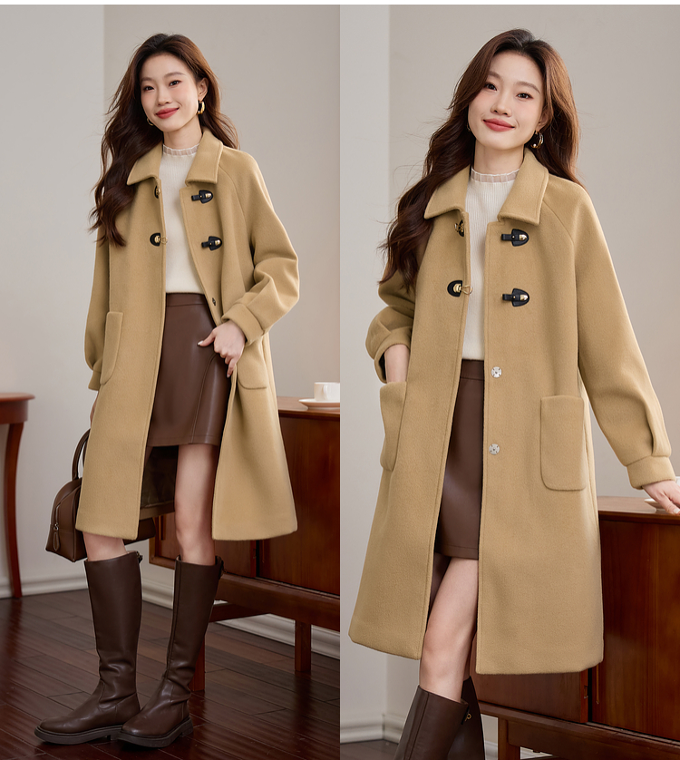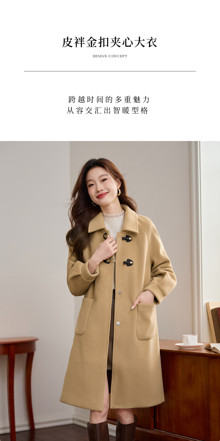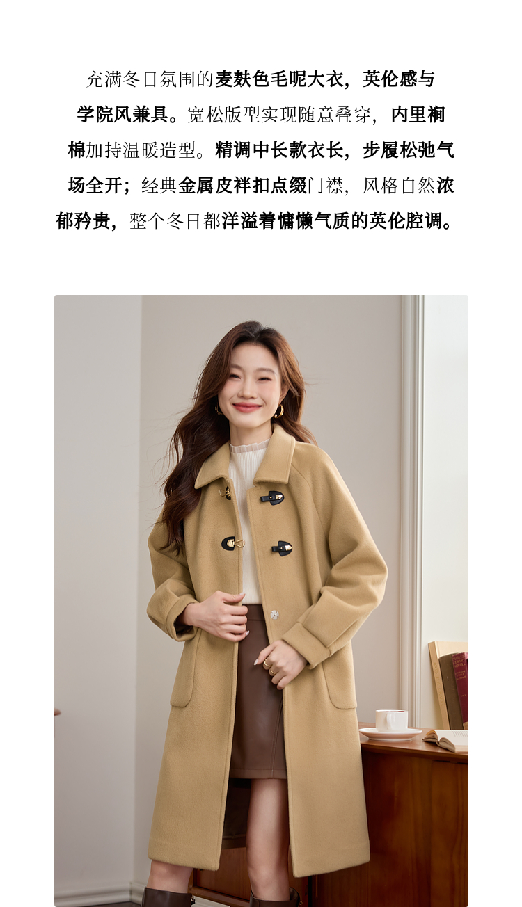 【年货节】熙世界毛呢外套中长款女冬季2025年新款复古加厚夹棉翻领呢子大衣