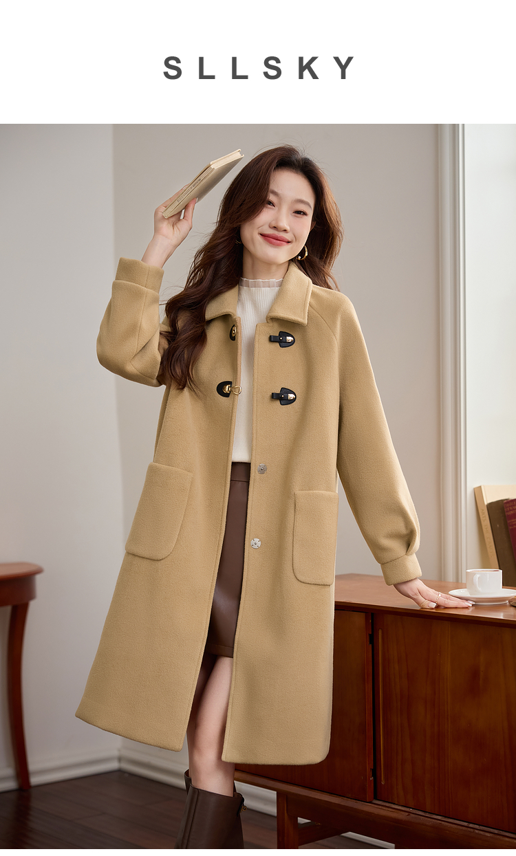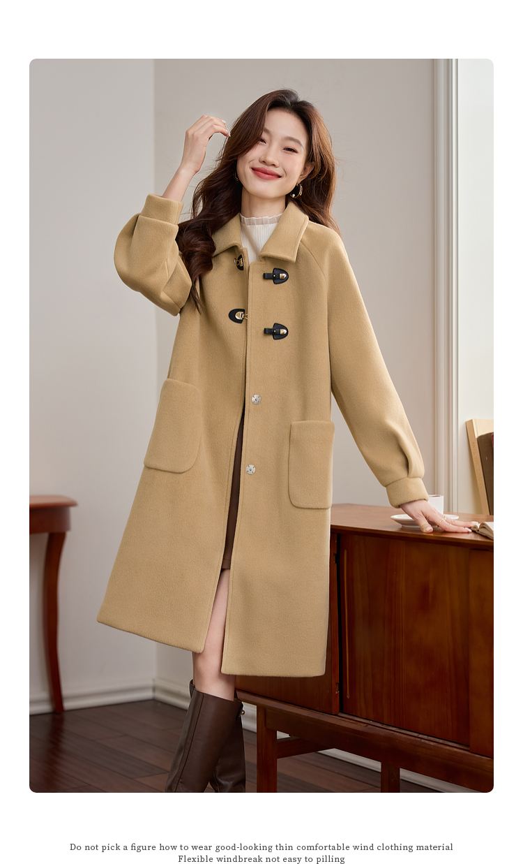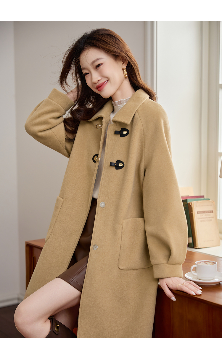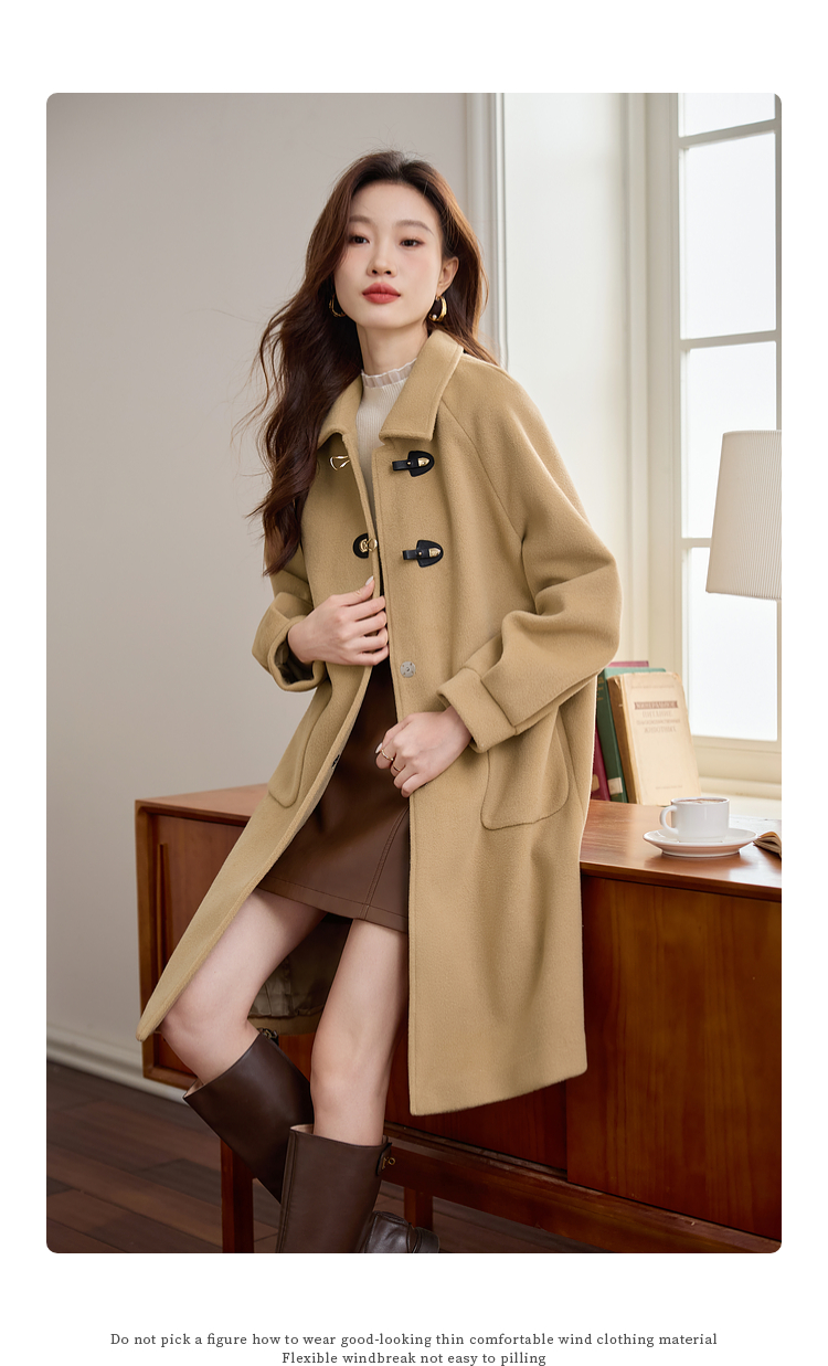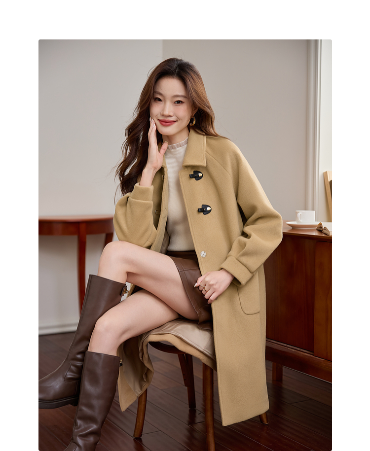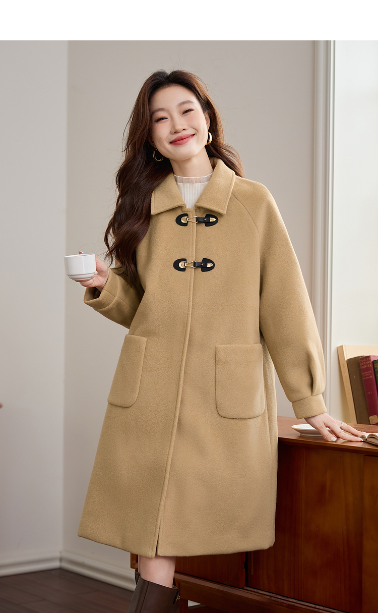 【年货节】熙世界毛呢外套中长款女冬季2025年新款复古加厚夹棉翻领呢子大衣
