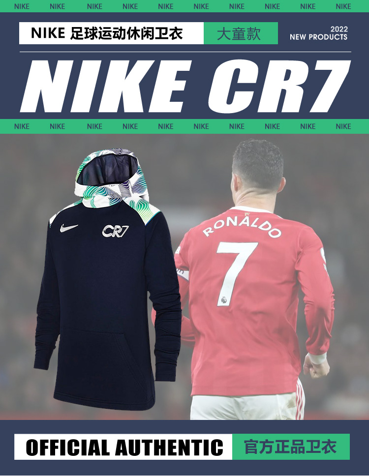 SFS耐克Nike正品CR7大童套头足球运动休闲百搭连帽卫衣DH9766-451