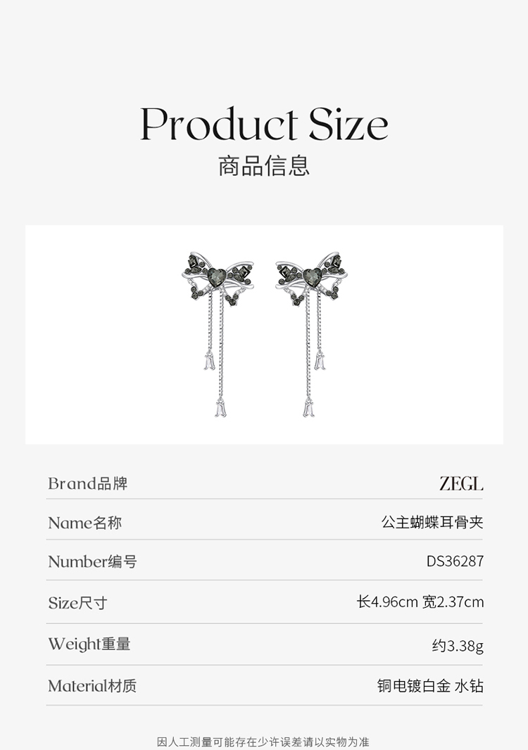 ZEGL设计师黑公主系列蝴蝶结流苏耳夹女无耳洞耳骨夹耳环秋冬耳饰