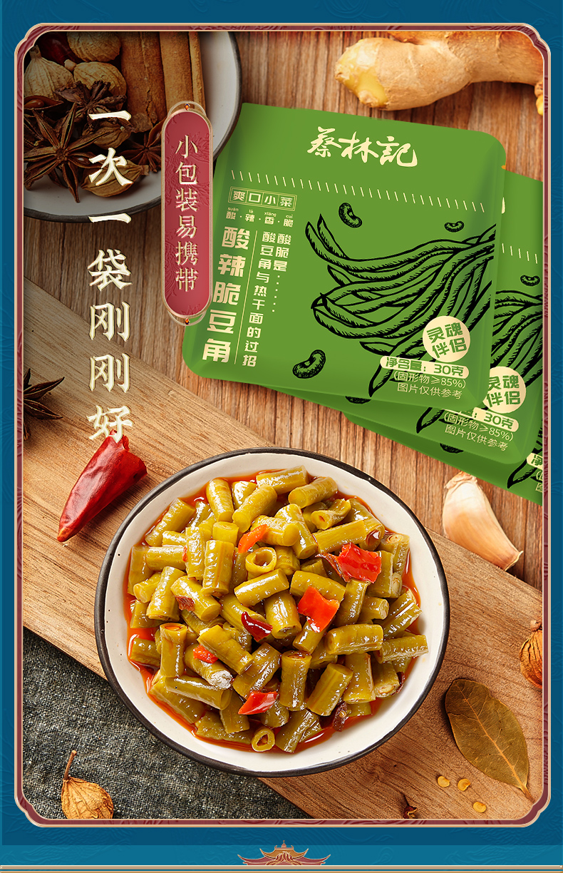 【特产劵199-100】蔡林记湖北风味袋装小菜酸豆角30g